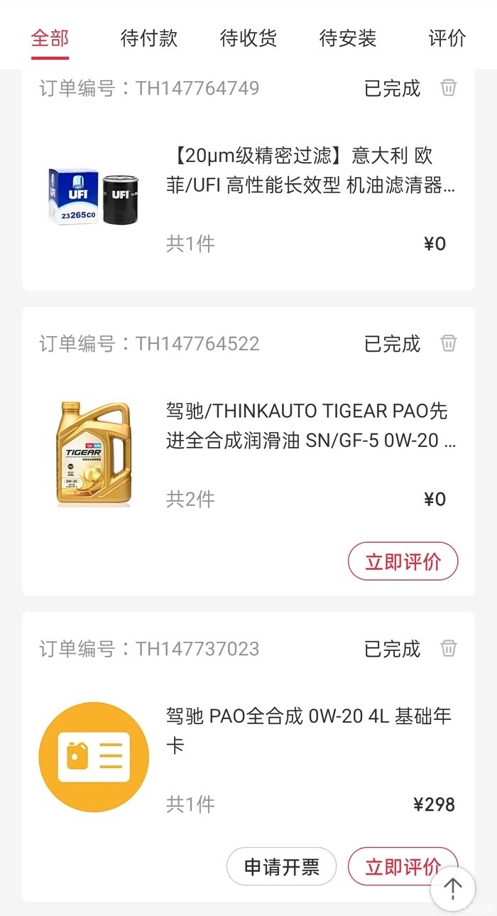 天气暖的时候一直是自己动手保养,去年12月天冷懒得动手,途虎买的298两次金驾驰0-20保养套餐,没赶上双11双12活动,这个价格能接受。没有选择99元5w-20是担心冷启动噪音问题。