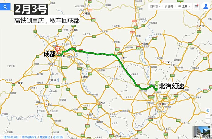 2月3号,重庆取车,回成都,335 km