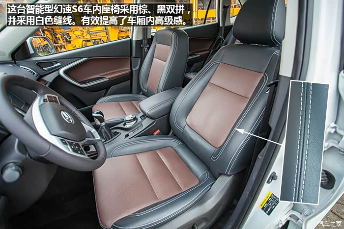 本次试驾车型是智能型,也就是幻速S6手动挡车型中的顶配,具体配置包括:无钥匙进入、无钥匙启动、胎压监测、全景天窗、后视镜电动折叠、内后视镜自动防眩目、车道偏离预警、并线辅助、后视镜盲区监测、自动启停、自动大灯、感应雨刷、全景摄像头...等等。