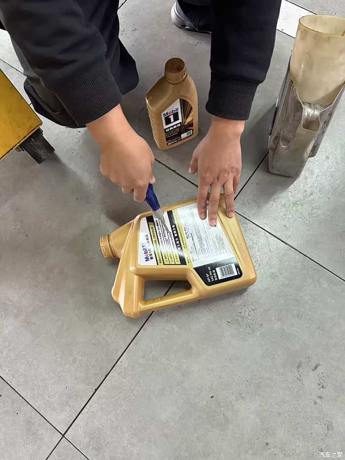 处理完公事,我就去看看保养流程,这时候已经到了加机油的时候,那个店长模样的小伙子也帮忙加机油,另外帮忙破坏油桶,防止二次利用,这点也都是好评。