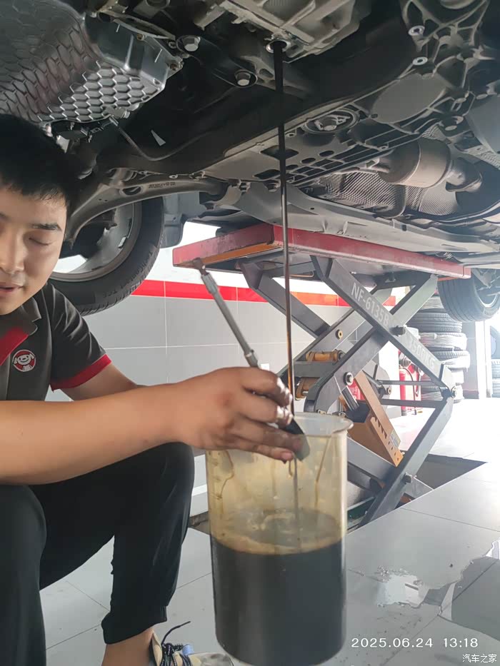 最后惊喜的来了,叫专修师傅帮忙看了下机油,最后抽了2升才达到刻度中线。