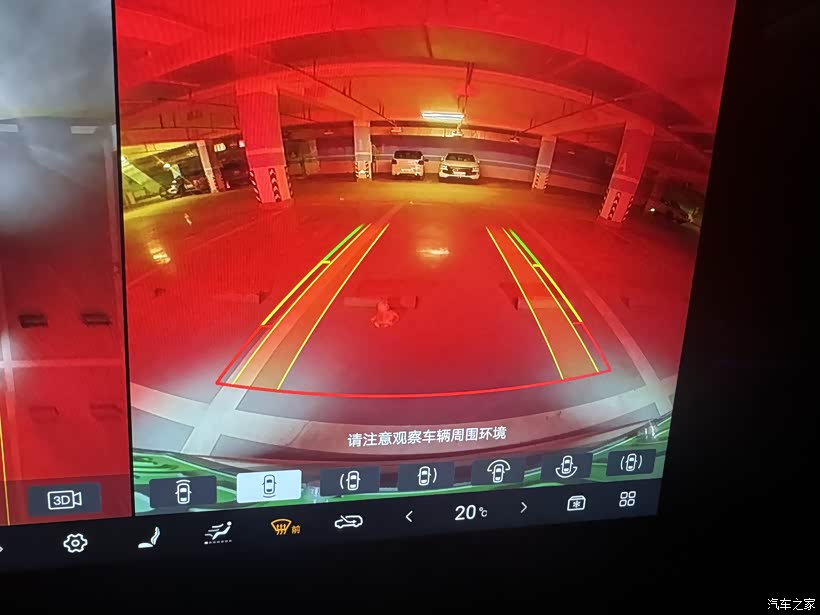 从这图看,远处车辆的车牌不太清楚,倒车影像主要是辅助看车周障碍物,不是专门拍车牌的,距离近点可能能看清,但一般这个功能重点在测距和看障碍,想看清楚车牌可能得离近或者单独装专门的摄像头