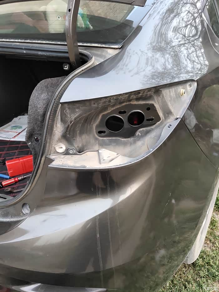 5、轻轻摇晃尾灯总成,松动后从里向外挤压,同时均匀发力右后拔出尾灯总成;