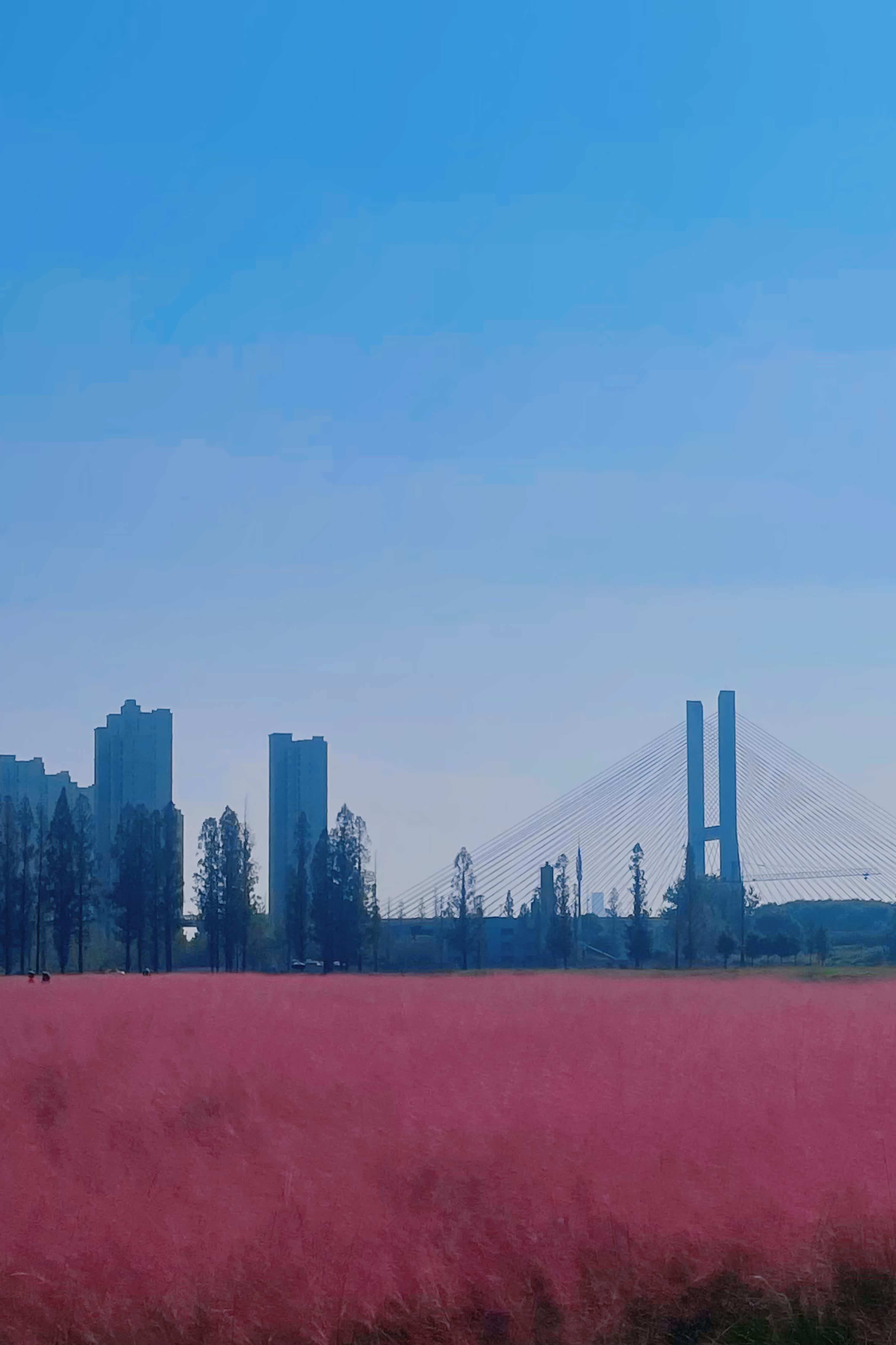 午饭后,我们驱车前往下一站——粉黛子草花海。这可是东西湖区最近的“网红打卡地”。秋风一吹,成片的粉黛子草像粉色的云海,轻柔得让人舍不得眨眼。