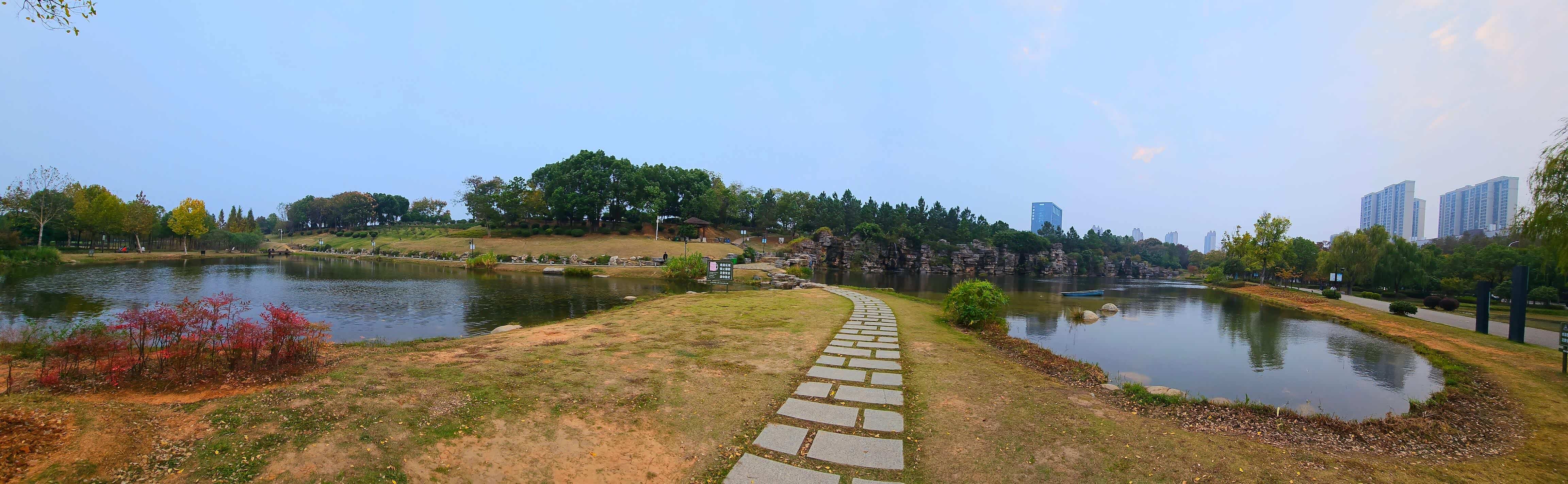 下午五点左右,我们离开粉黛子草花海,导航导向了码头潭文化遗址公园。这地方原本是武汉人都知道的“古遗址”,如今改建成了集湖景、文化、步道为一体的城市公园。