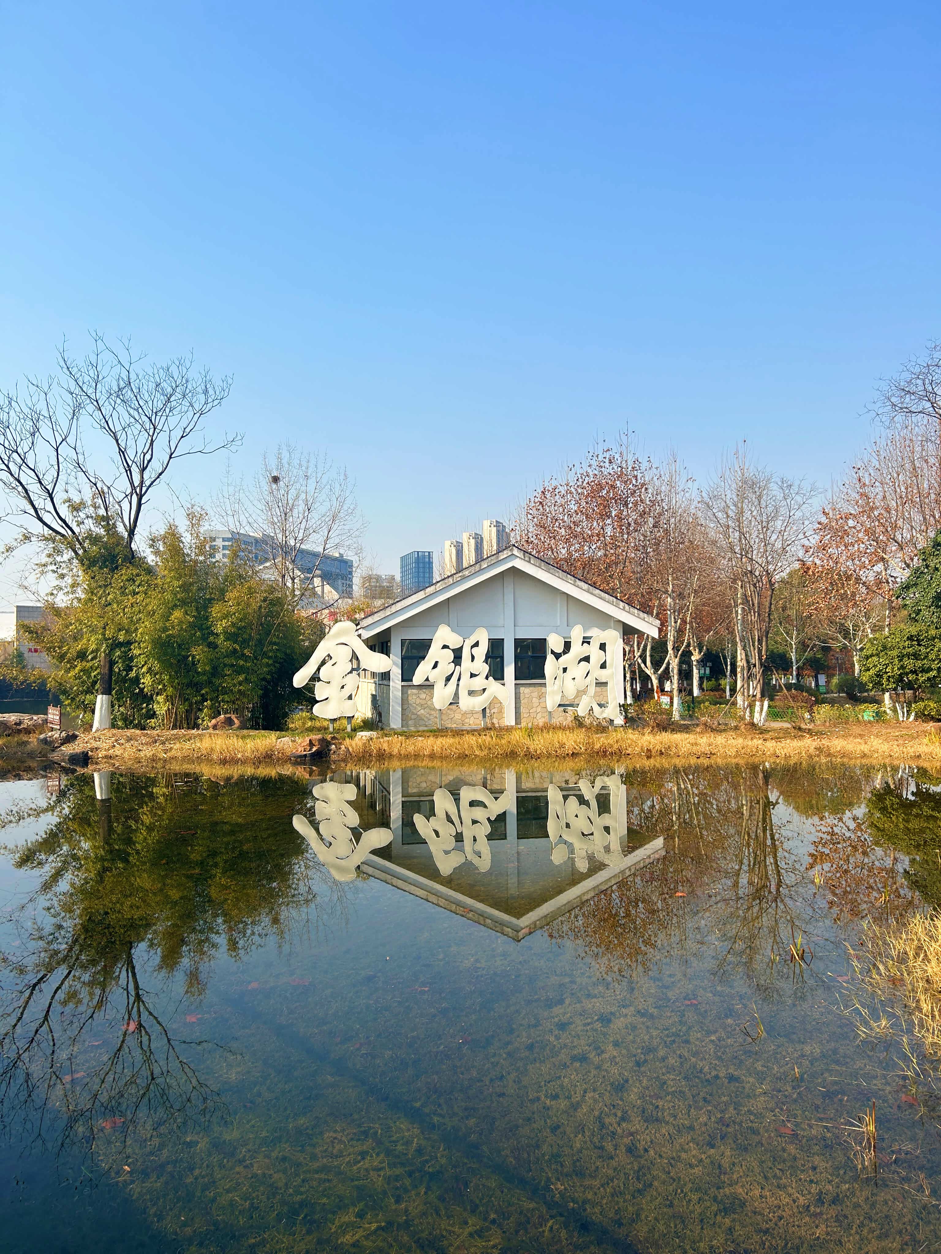 我们第一站是金银湖生态公园。这个地方我以前偶尔会来跑步,环境非常舒服。湖面宽阔,岸边的芦苇随风摆动,空气里带着一股淡淡的水汽味道。