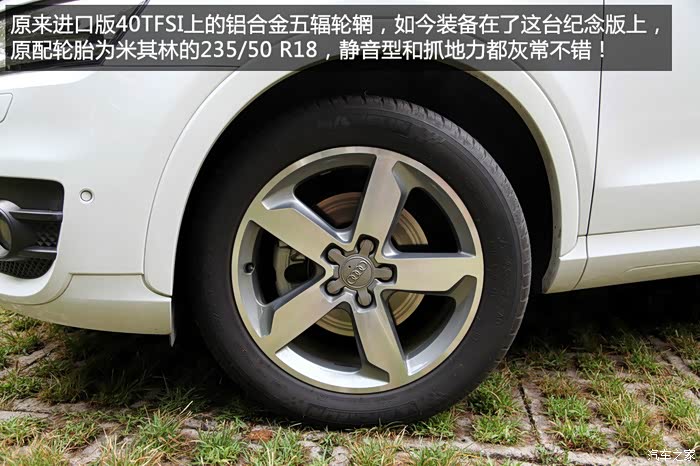 我拿到的这款Q3测试车是奥迪为庆祝全系车型在国内销售达到300万辆的一个纪念版,全名是:(请先深呼吸)Q3 35TFSI quattro 全时四驱乐享版,我来翻译一下就是2.0T低功率的四驱顶配车型。你要是问我这个300万纪念版和普通版有啥区别……除了上图中壁虎右面的那个铭牌以外,我母鸡呀……我也木有开过普通版,只能是就车论车了,先向各位请罪……