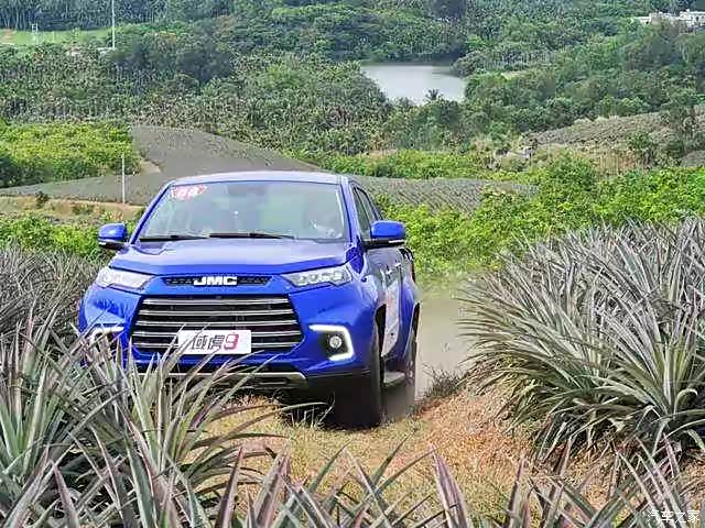 域虎9此前便是江铃福特的旗舰级皮卡车型,从外观设计到内饰设计方面都有着浓厚的美式基因,其中新车的前脸造型较为硬朗,拥有较高的原创度,并且整车延续了家族化的设计语言。该车前脸部分配备皮卡车型惯用的大嘴式中网,内部则以横幅饰条作为填充。左右两侧上翘的前大灯组内部采用LED近光灯,并且具备光导LED日间行车灯,点亮后的视觉效果比较不错。