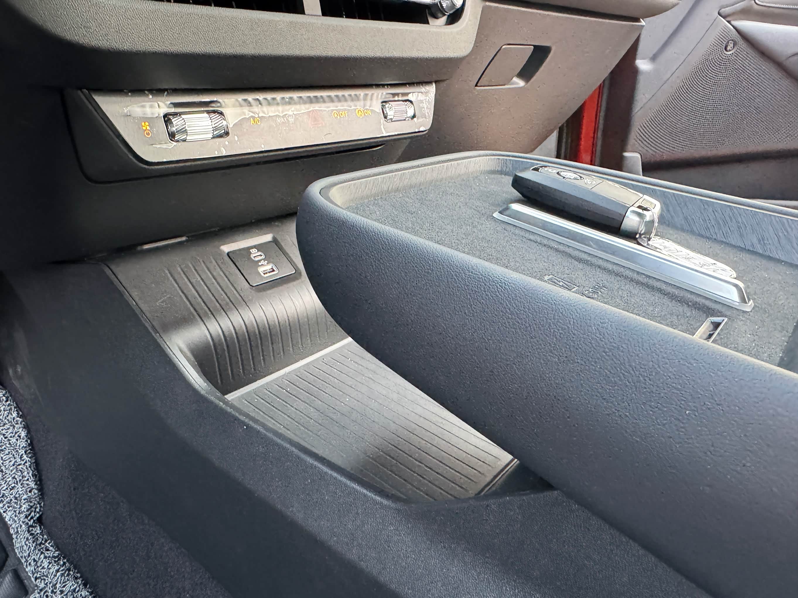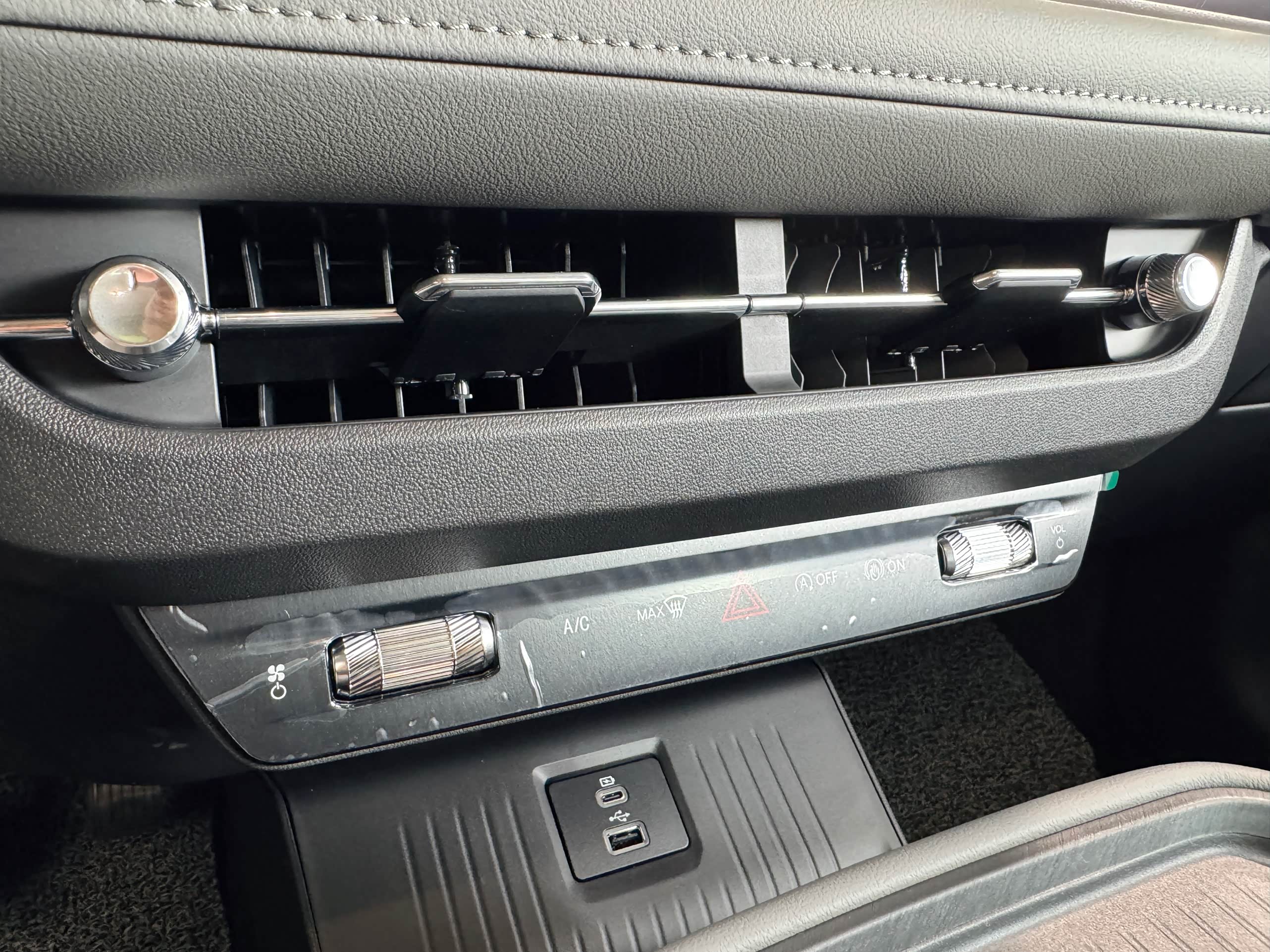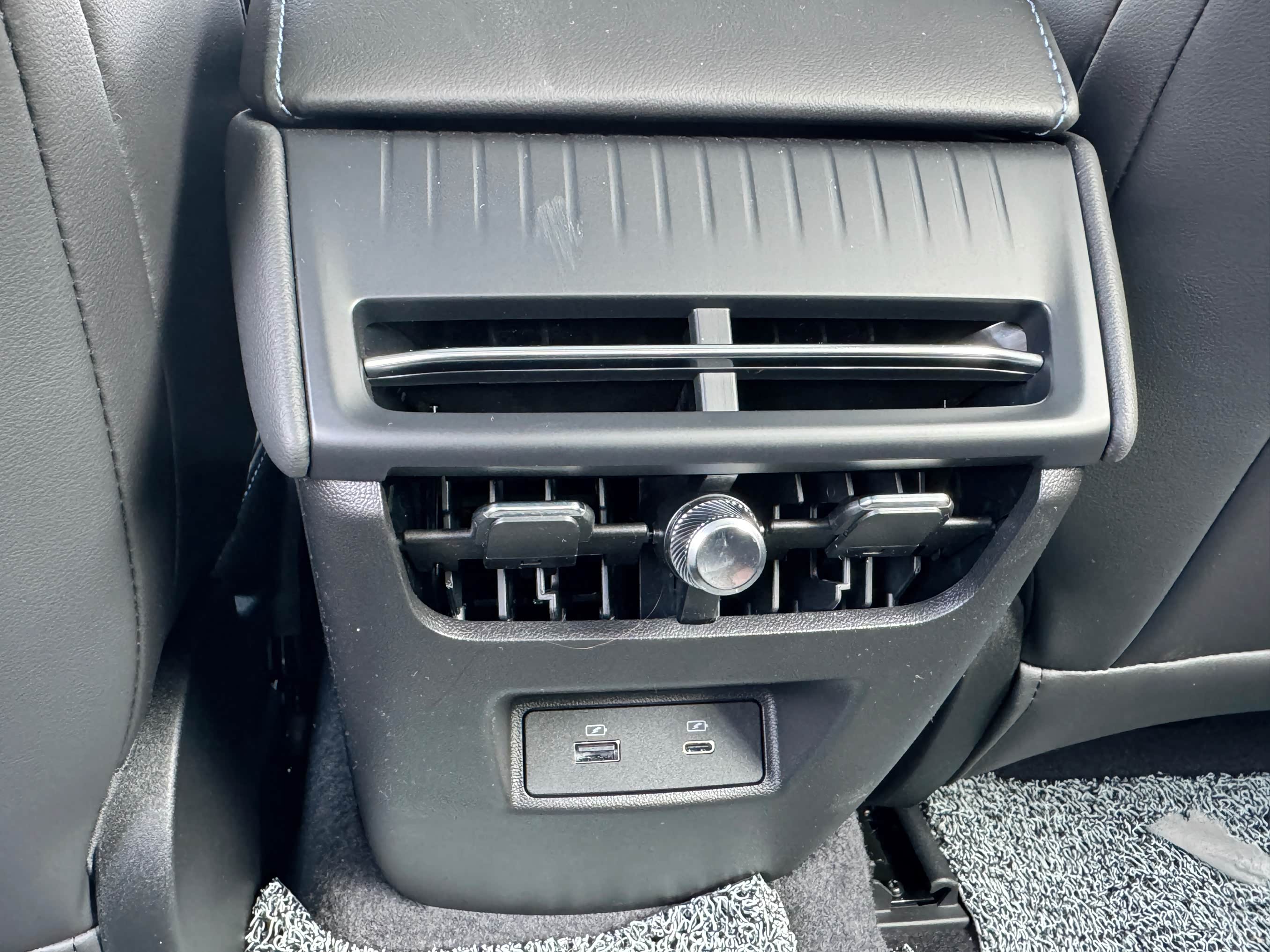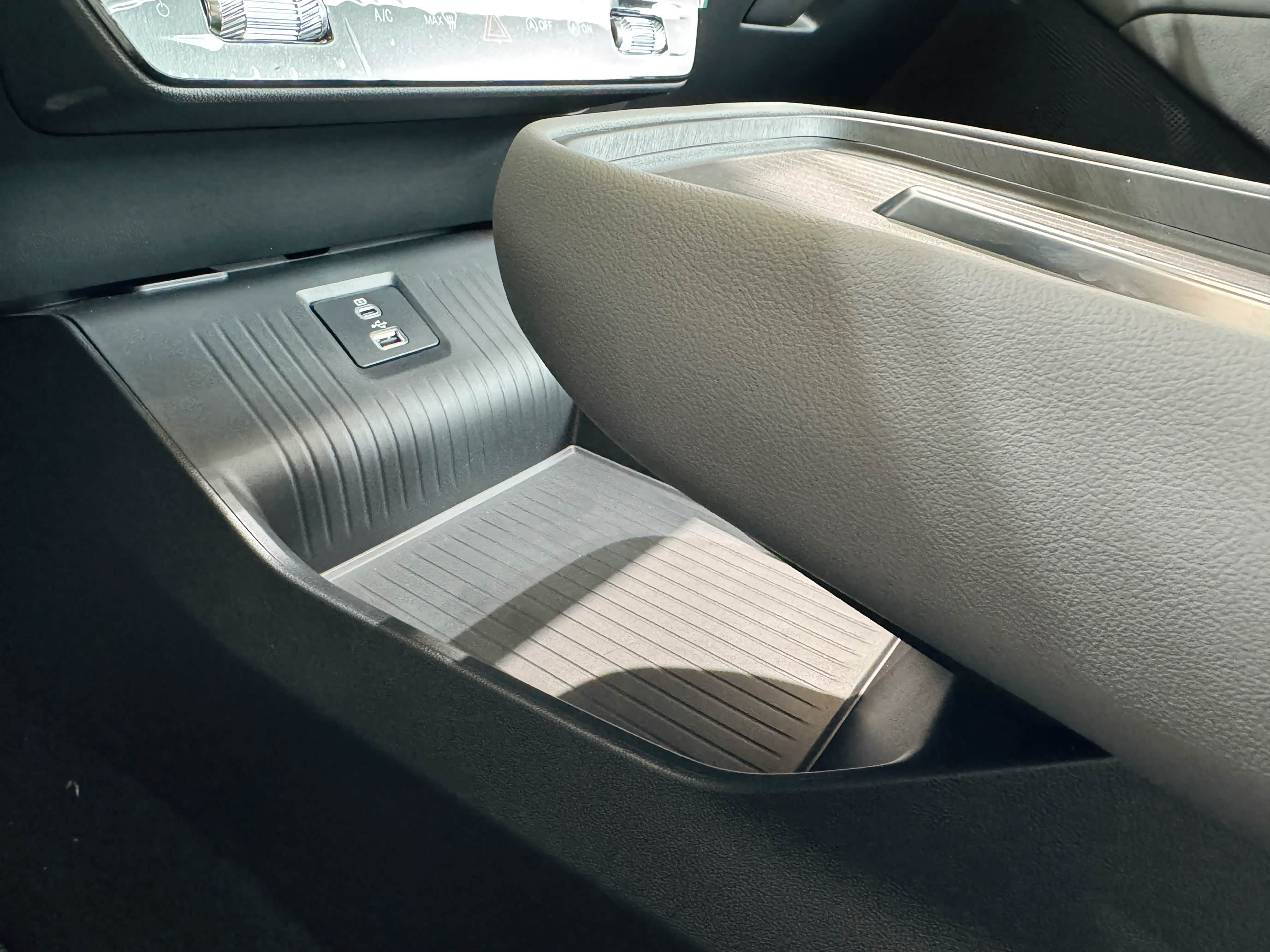 细节设计也很贴心。中控地台改成了悬浮式,下方多了4.5L储物空间,可以放随手包包等物件;50W无线快充充电方便太多,手机放上去很快就能充满;后排U***/Type-C接口有两个,全家出行也不用担心不够充电口。