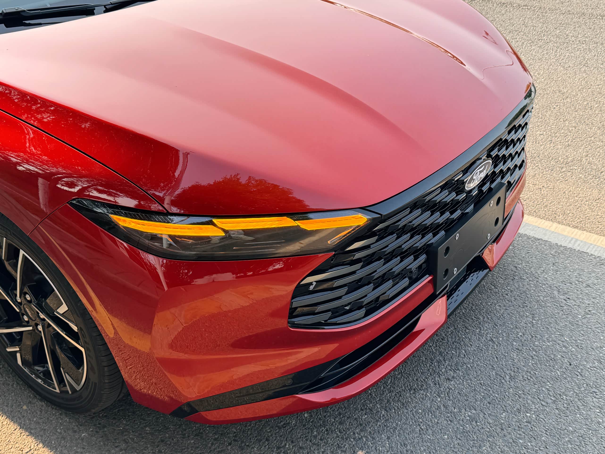 早在两星期前的广州车展时,就对新蒙迪欧一睹为快了,但车展现场人多嘈杂,只能匆匆看个大概,这次静态体验更从容。新款的外观比老款更年轻运动,前脸大尺寸六边形格栅带电镀条的交替设计,整个中网的面积更大,运动风更强烈了,一体式的大灯相比旧款的分体大灯,整体性更好了。