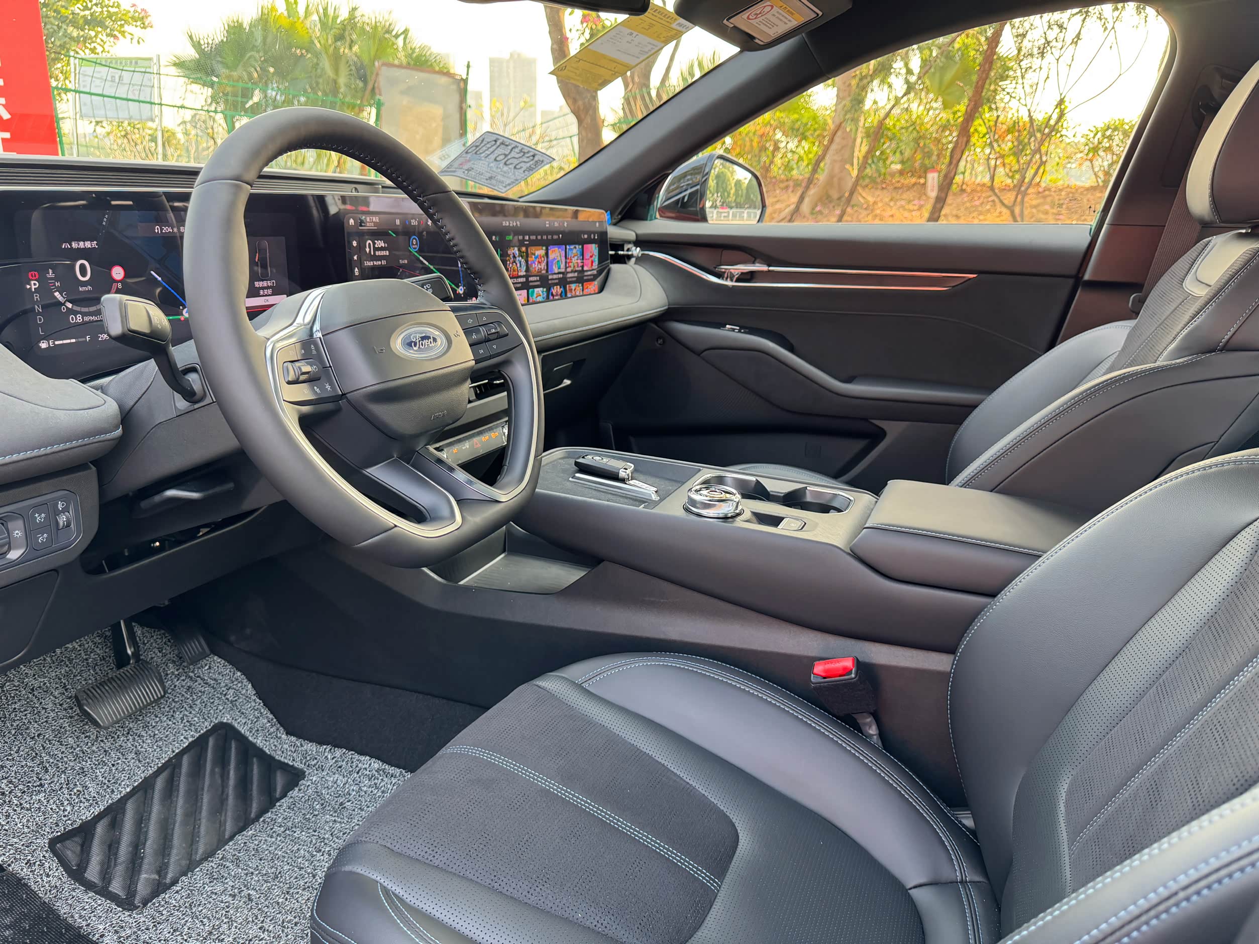 静态看了展车,就准备试驾新车了,试驾车的是全新款2.0T EcoBoost至尊型,先报参数:新款蒙迪欧的2.0T发动机最大功率192kW,峰值扭矩408N·m,马力达到261匹,比上一款多了7匹马力,相比我22款的175kW、376N·m提升明显,马力大了23匹,这数据看着就很猛了,开习惯了2.0T的大马力,高速那一个舒服,谁用谁知道。