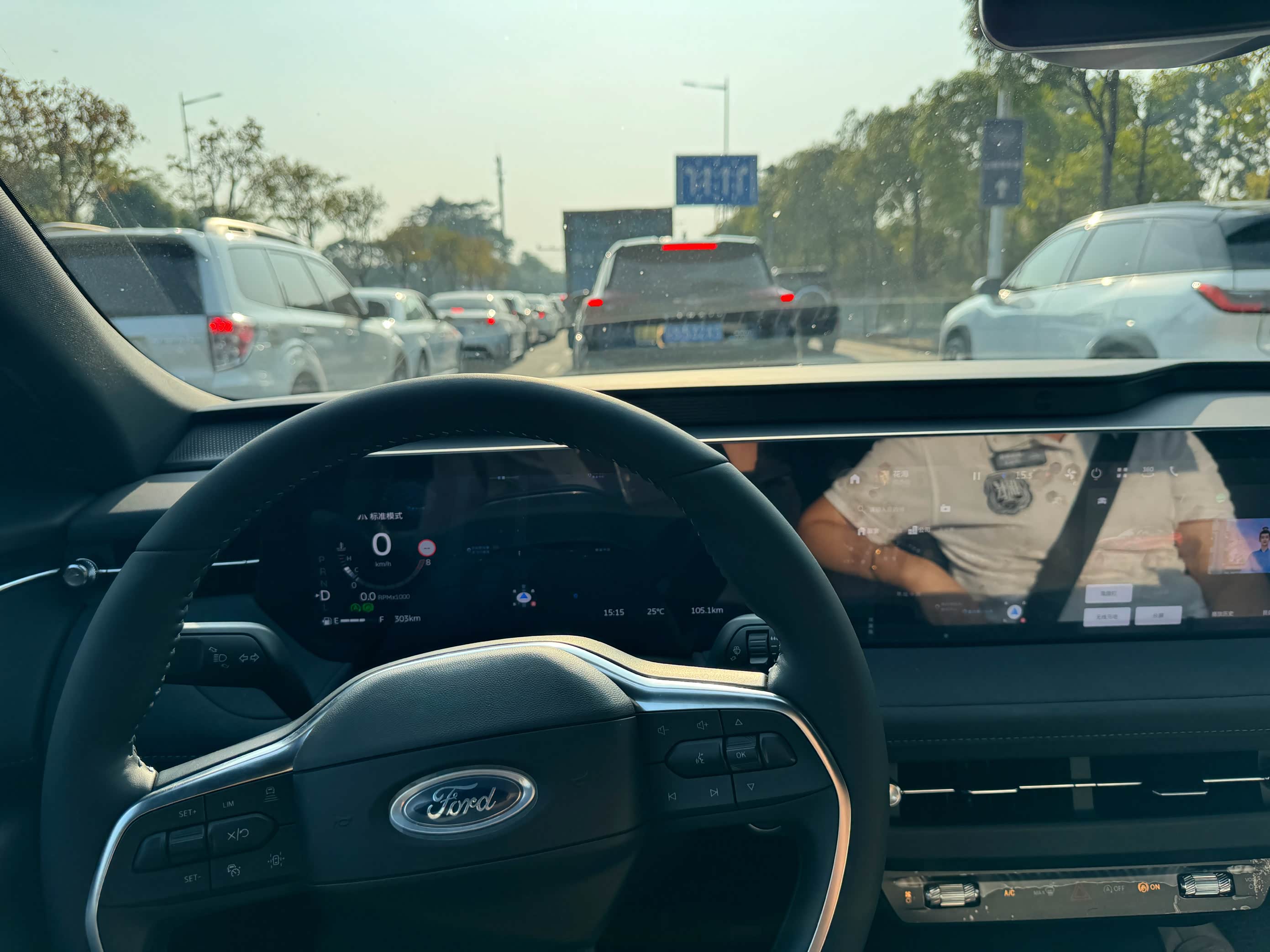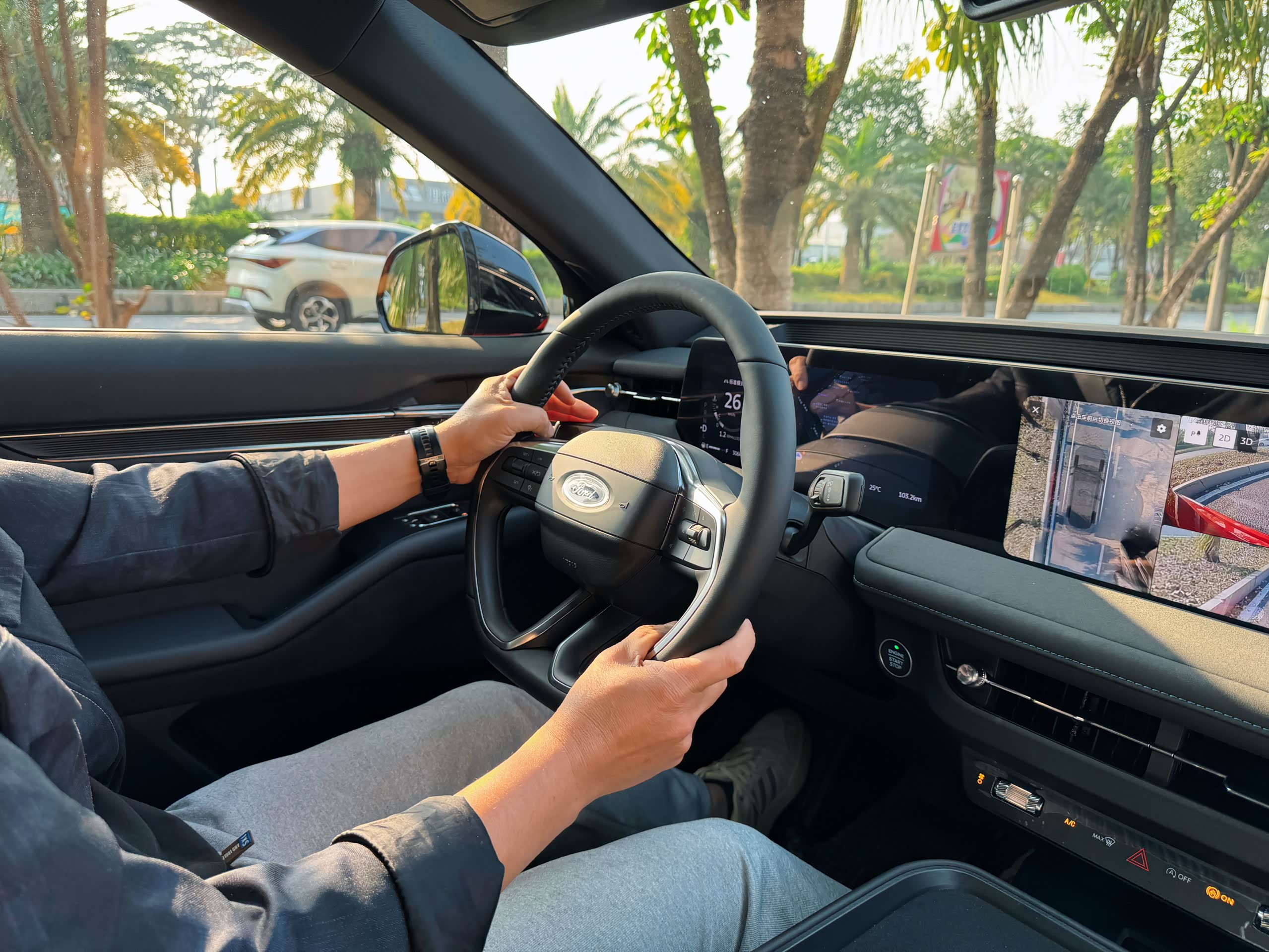 底盘调校还是熟悉的福特味道,硬朗但不生硬。过减速带时,悬架过滤细碎振动很彻底,坐在后排不会觉得颠;弯道时侧倾控制得很好,方向盘指向精准,没有虚位,开起来特别有信心。NVH优化也到位,行车时在车内说话不用刻意提高嗓门,隔音的效果还不错。