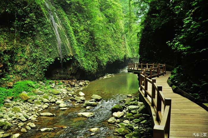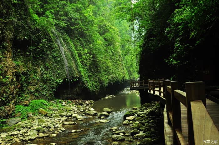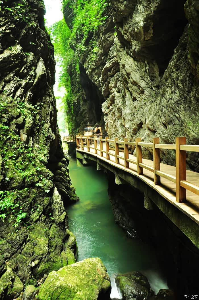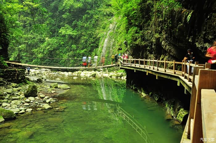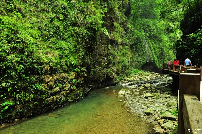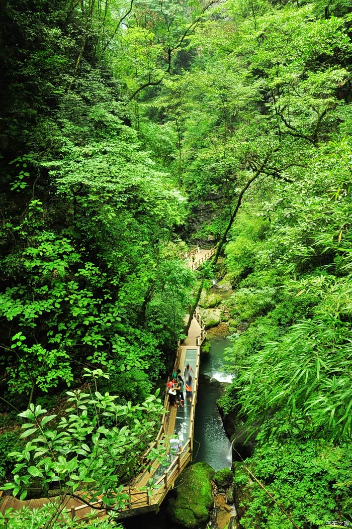 据导游说:“景区的负氧离子含量每立方厘米平均达到8万个,瞬间负氧离子含量10万个以上。”极高的负氧离子含量对于久困于都市的我们来说,无疑是难得的健康天然财富。我们乘坐缆车进入峡谷,此时,整个人便被溶入苍茫的林海之中,峡谷两岸是险绝峭拔的山峰,山峰皆被茂密的绿色植物覆盖。