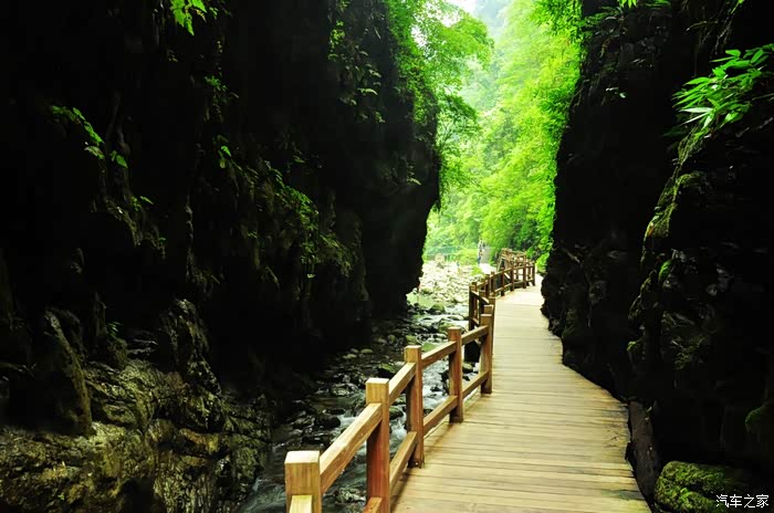 显然,黑山谷不再是未开垦的***地,万盛人已率先揭开它的盖头,向游人展示出一个全长13公里,涵盖峡、峰、桥、瀑、潭,集山、水、泉、林、洞于一谷,融奇、险、峻、秀、幽于一体的神奇夹谷。所以,黑山谷成为国家AAAA旅游区;成为重庆最大的,原始生态保护最完好的自然生态风景区;成为专家们认可的“渝黔生物基因库”;成为亚洲最具魅力风景区就不足为奇。伫立谷底仰望,一路都是望掉了帽子方见刺破青天锷未残的尖峰怪石,在这里,你尽可以体味高山沟壑的惊心动魄,大自然的鬼斧神工。