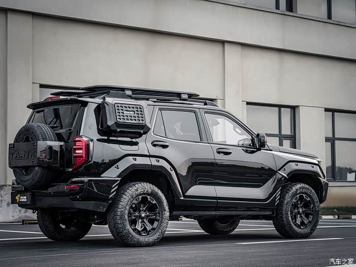 车顶平台,侧挂收纳箱,爬梯的组合真的是超乎想象的帅。改车就是追求一个协调,就像现在流行的新能源车,改肯定是往高了改,横向再拓展肯定没有那么帅,但是坦克400这种硬派越野车,本身就非常“高挑”了,整体骨架更加立体且具有张力,选择也就更多,可以在车顶上玩出花来,也可以选择素着车顶,在侧面玩点新花样。