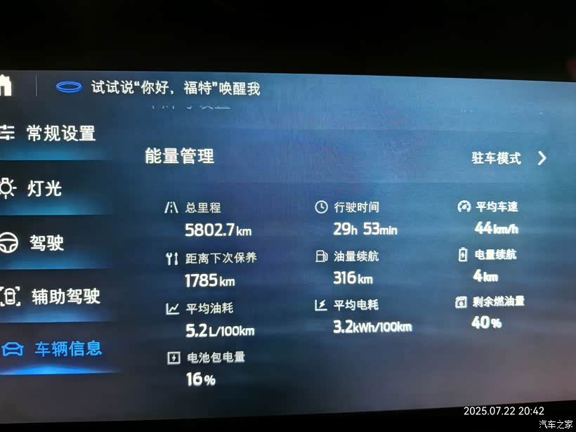 出发去青海首先选择燃油优先,对动力电池电量保持目标设置50%。车辆行驶中发动机为动力电池充电,将电量维持在目标电量附近,会导致油耗很高,大概6.5-7L/百公里。