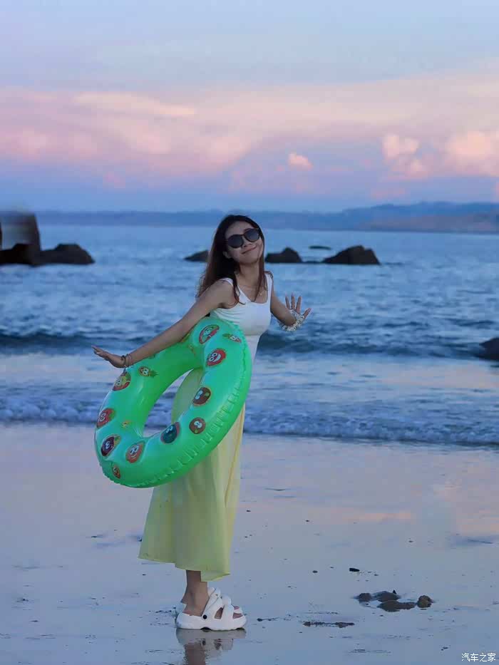 下午四五点的时候,找沙滩上的阿姨帮忙把我们的泳圈给打起来,就迫不及待地扑进海里。