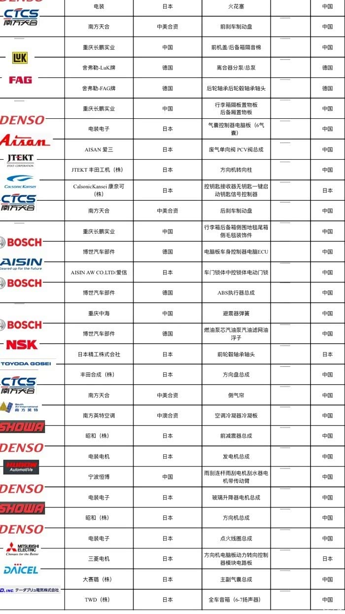 铃木启悦的零配件由国际一线供应商和国内主流配套厂商共同提供,核心系统/部件的供应商如下: