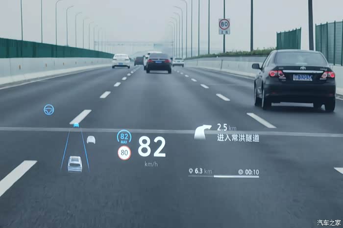 阿尔法T5的抬头显示有两种模式,一种是精简模式,一种是标准模式,肯定是推荐标准模式,车辆周围的情况都能显示出来。22.8英寸尺寸很大,字体非常锐利清晰,不管是白天还是黑天,晴天还是阴天,都能显示的非常清晰。