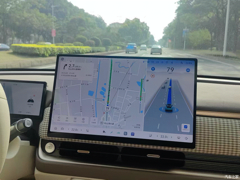简单开了一段,感觉这车挺轻快的,加速减速都平顺,没什么顿挫感。在慢速路段开了巡航,车速和车道保持得都还行。一开始我没搞懂怎么开NOA,销售说了才知道,挡杆往下拨两下就行。打开之后屏幕上NOA指示灯就亮了,我发现它识别东西还挺准的,行人、小车、大车都能分辨。碰到开得慢的车,它也会自己超过去,过弯道、进匝道会自己减速,方向盘把得也挺稳。要出主路的时候,它会提前变到最右边车道,这点挺聪明。让我觉得比较实在的是,它不怎么抢行——比如过红绿灯,它会等前车动了才跟上,而不是绿灯一亮就冲,虽然反应慢一点,但感觉更稳妥。