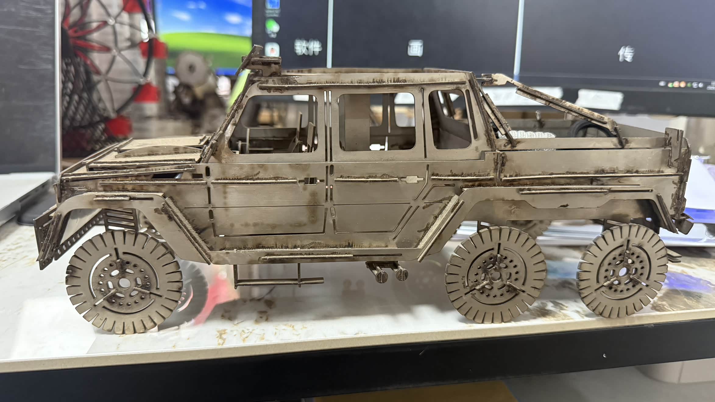 奔驰为新款G63 AMG进行了全面修饰,换上了新设计的前保险杠,三块大面积散热口预示着强悍的动力,进气格栅改用双横条配三叉星,四支大口径排气管从车身两侧后轮前部的侧裙处探出,最后再配以AMG传统风格的大尺寸五幅合金轮毂。