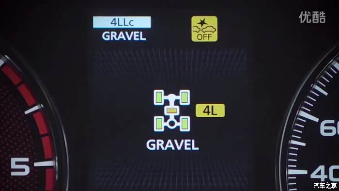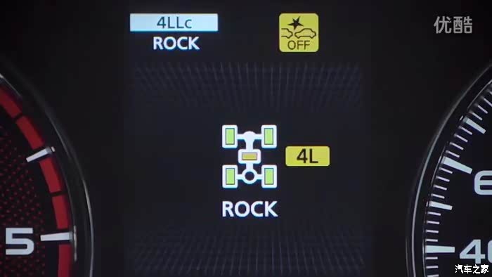 3、切换4HLc与4LLc挡位,当前的越野模式并不会改变。如果是在4LLc下选择了岩石模式(ROCK),切换到4HLc以后越野模式会变为碎石模式(GRAVEL)。