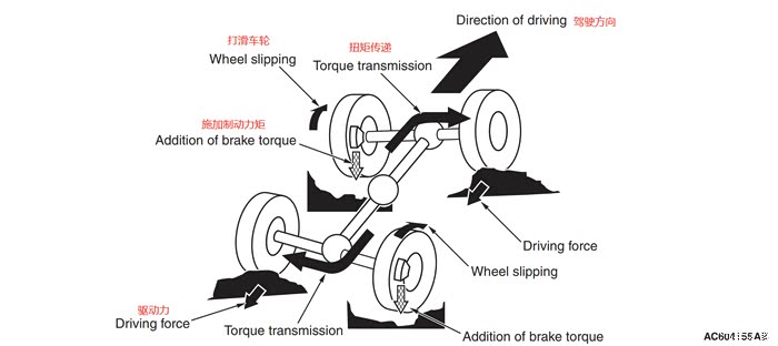 下面根据上图再详解TCL牵引力控制(限滑)的工作原理。