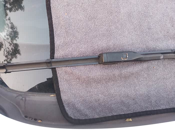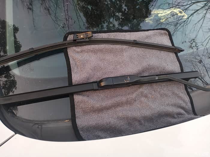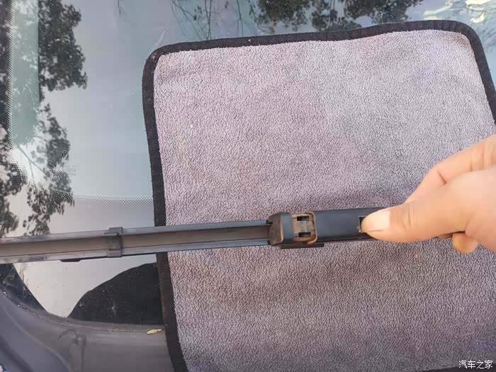 接下来分享一下我的更换过程,雨刮器更换看似简单,中间也需要注意一些细节,更换时被一个毛巾把它垫在雨刮器下面再进行更换,这样可以防止更换过程中不小心雨刮臂落下打伤玻璃,这样就得不偿失了!