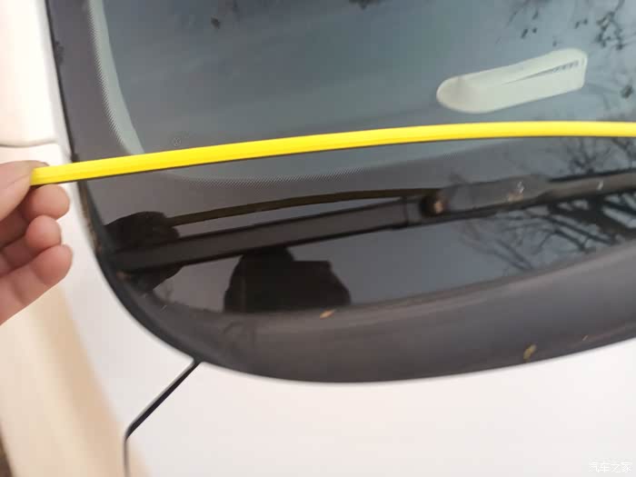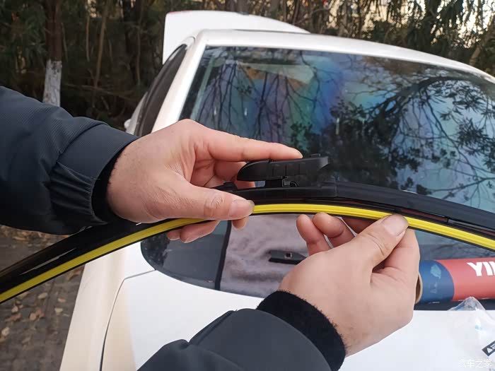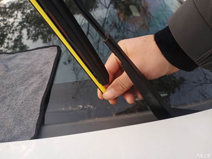 最后一步就是把新的雨刮器上面黄色胶套去掉,这个黄色的与胶套不是雨刮胶条,是用来做防护用的,我第一次更换雨刮器的时候没有去,掉刮不干净才意识到这个保护套没有去掉!
