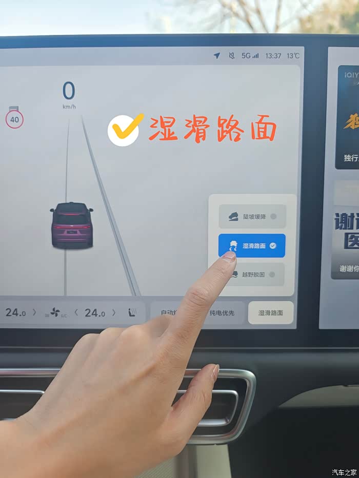 一般下雨下雪的时候开车,可以打开“湿滑路面”,每个按钮和功能都有它存在的价值,打开它!