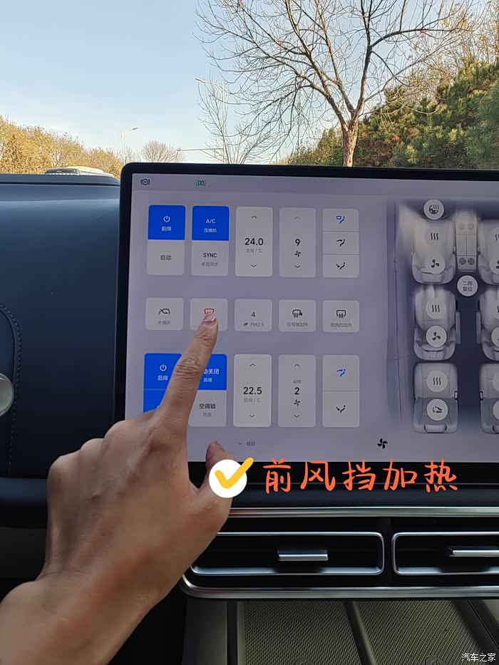 入冬以后经常会遇到车窗起霜、起雾的情况,或雨刮器胶条被冻在挡风玻璃上。虽然以前也知道用空调吹,但是经常傻傻分不清楚空调吹的哪里。L9就好多啦~直接点击前后风挡除霜/除雾,后视镜加热,就搞定了!