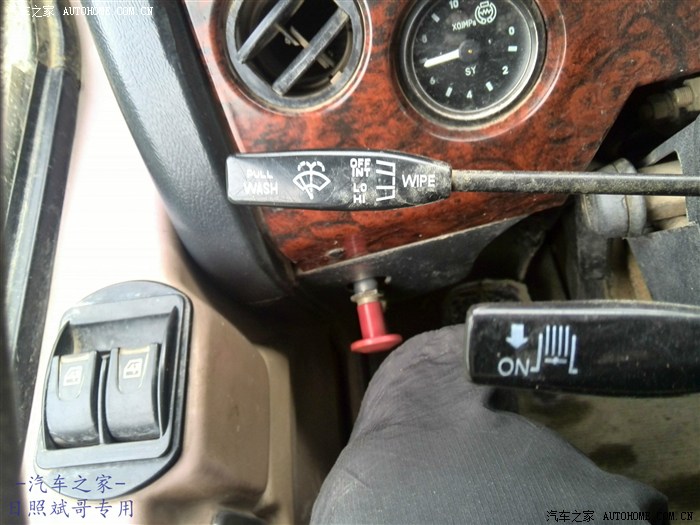 方向盘左右的控制开关,一个有雨刷,另外一个,谁知道?叫什么排气制动,打开后把排气筒给堵上,强制堵住排气筒,让发动机无法升高转速。一般下坡带档用的。