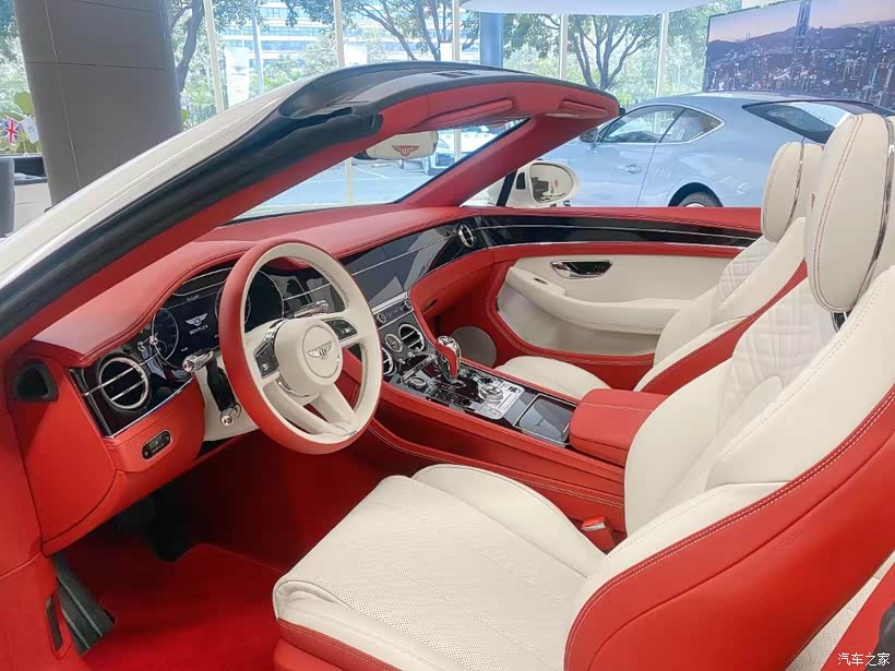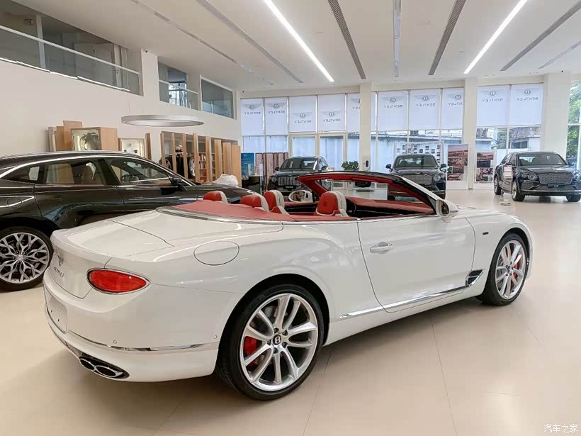 【配置】22英寸五辐开放式喷漆轮毂、酒红色敞篷罩、标准刹车碟配红色卡钳、单色面板-黑钢琴木、前面板和车门腰梁镀铬装饰条。BENTLEY CLUB 🔟年专注