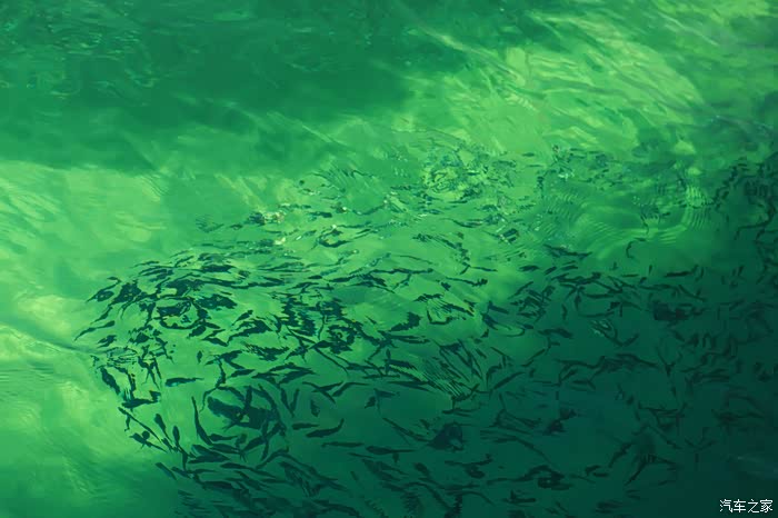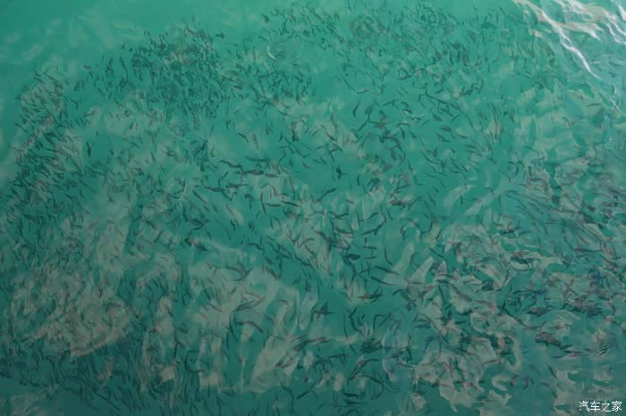 水面上小鱼儿非常多,而且是一坨一坨的,密密麻麻的扎堆在一起,很壮观