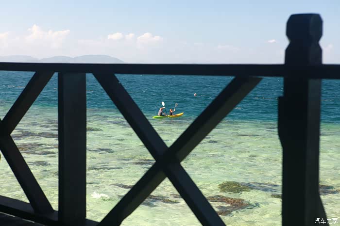 此时阳台外看到一对foreigner悠闲地划着橡皮艇,明显比起那几个浮潜浮出去浮不回来的明智多了