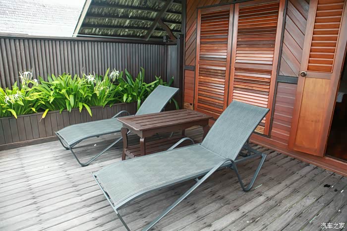 阳台也不错吧,我看和人家马尔代夫水屋差不多嘛,我们阳台朝北,所以太阳晒不到,很凉快的。