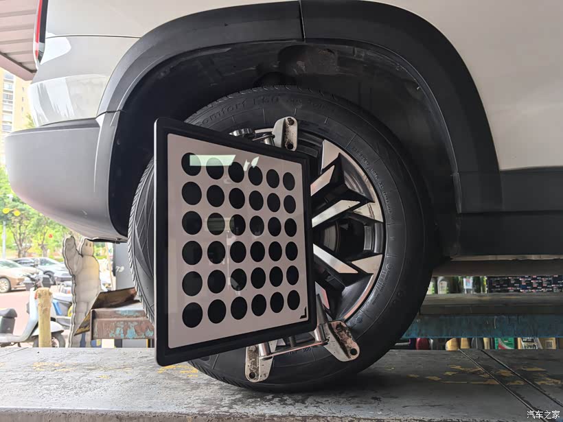 做完四轮定位,大狗轮胎焕新工作结束。两位师傅共同操作,前后一共花了一个多小时。
