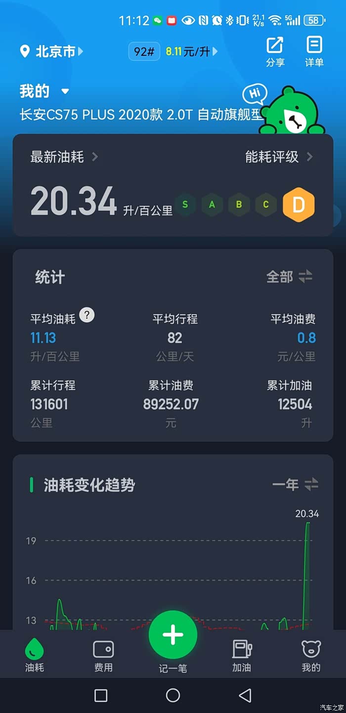 S75PLUS1.5t,长安油耗确实不高,很满意的!