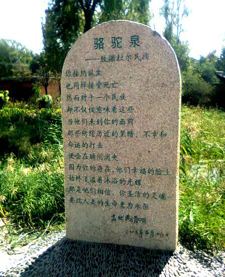 循化撒拉族自治县地处青藏高原边缘地带、祁连山支脉拉鸡山东端、四面环山、黄河流经其中达90公里。撒拉族祖先来之中亚土库曼斯坦、是因部落尕勒莽、阿合莽兄弟俩不堪忍受部落贵族的排挤和倾轧、率族长长途跋涉、辗转迁陡到青海循化定居下来,循化的骆驼泉是撒拉祖先远程迁陡而来的纪忘地。