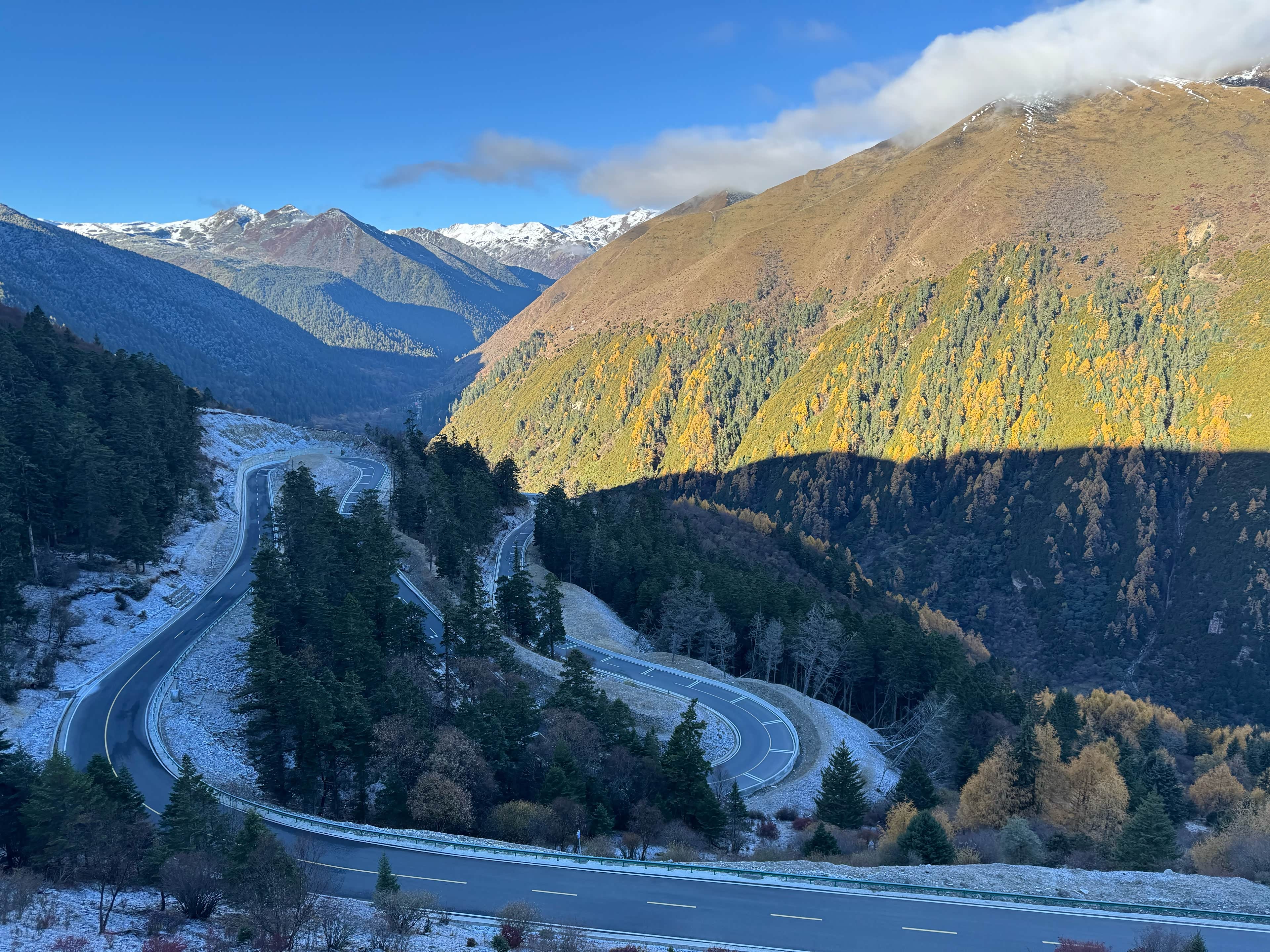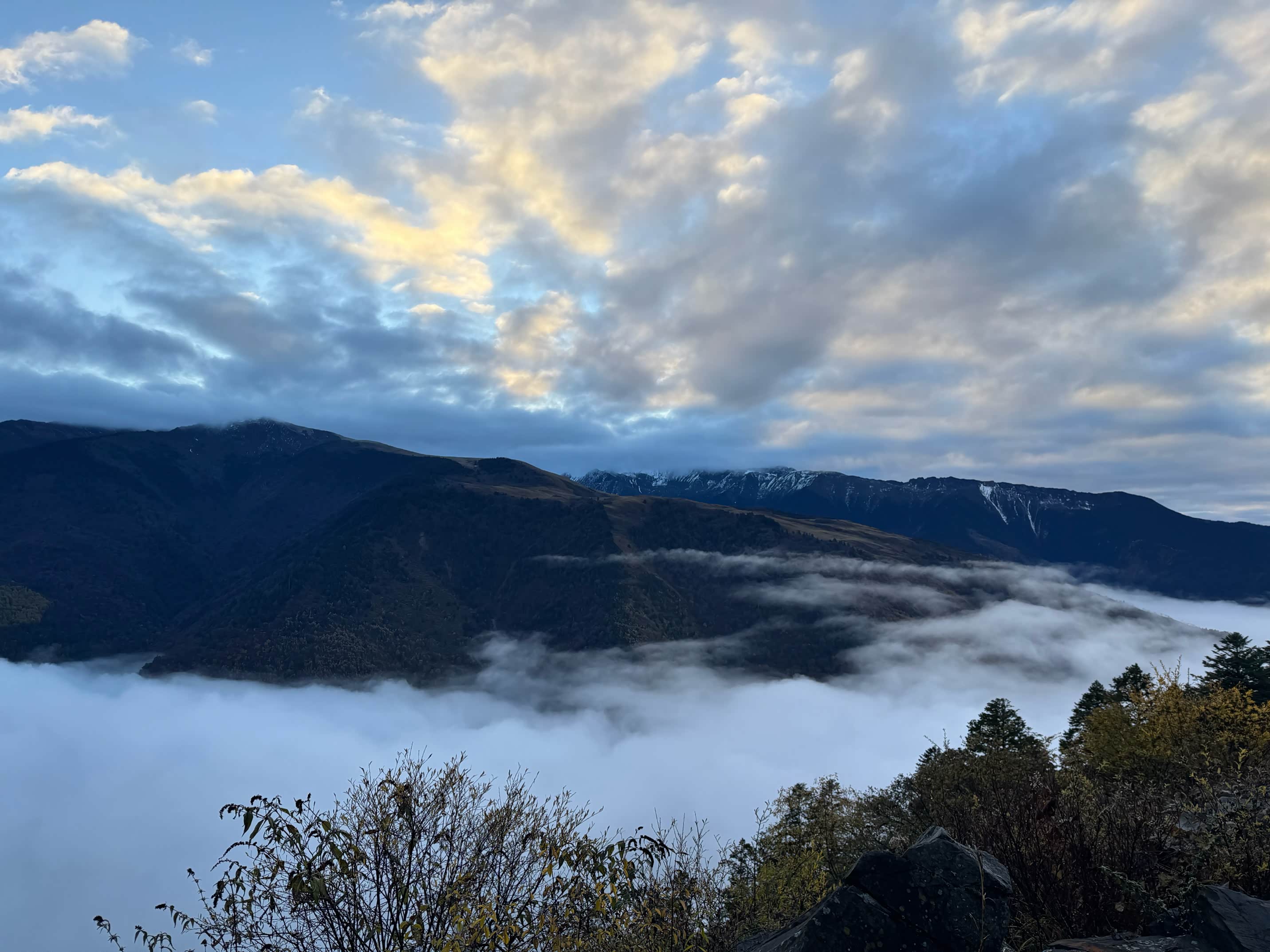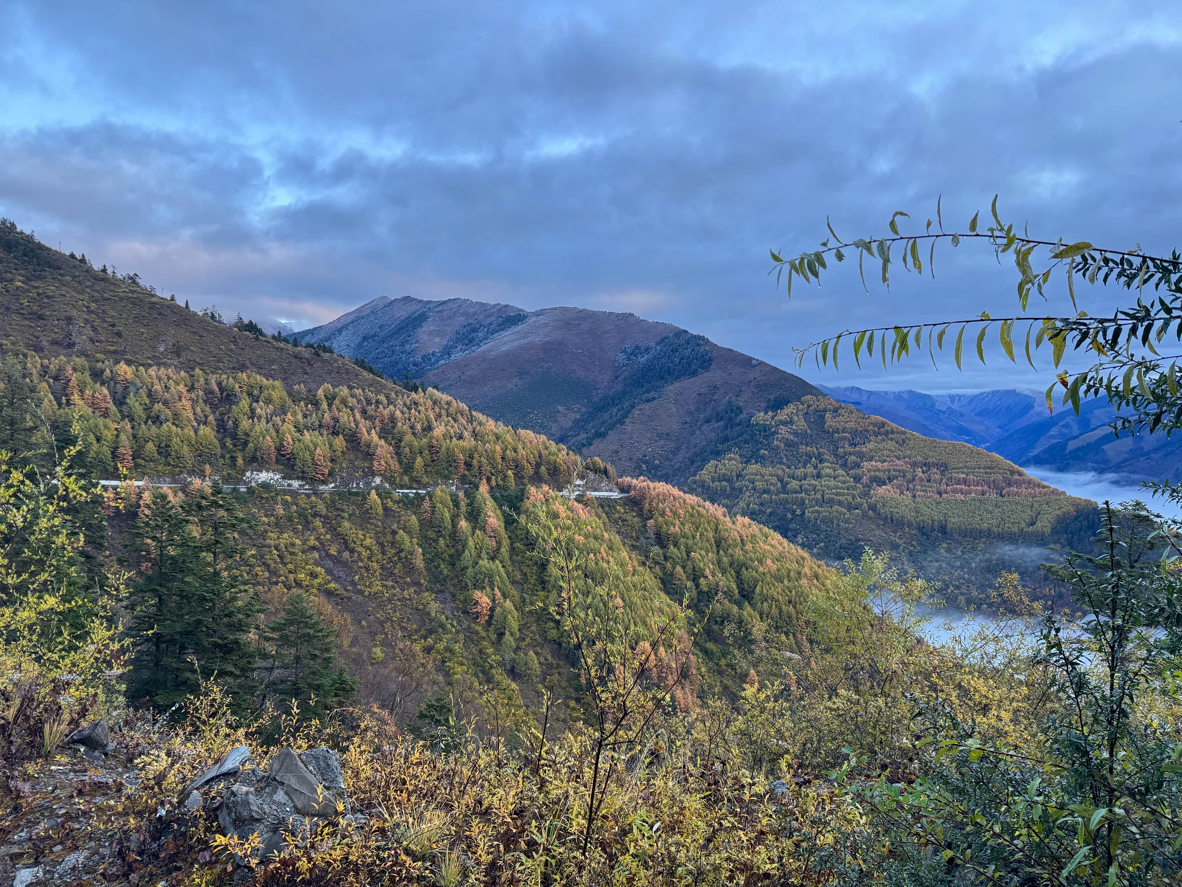 清晨的夹金山之巅,雾气在山涧间萦绕,转过一个又一座山头,半壁的彩林始终在晨曦中跟随着你,或浅或浓的彩色在山林间跳跃,忽而又是整片整片的金黄沿着山脊扑面而来,衬托着我们的渺小,以至于容易迷情在这山野之间,世界赋予了这片土地多姿多彩的生态,心中充满了对这片土地无限的热爱。
