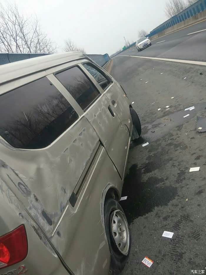 (亲身经历)嘭!坏了,胎爆了,方向立即向左摆去,我赶紧往右打方向,方向立即向右摆,心想车那么多,别碰车了,伸手去开双闪,一松右手,车又往左摆,一慌,脚就习就习惯性的踩上了刹,嘣!右前着地,立马天旋地转,两圈半后,车又向前滑了近30米才停下来,我一想不会车爆炸吧,解开安全带,使尽全力推开左门,自车上跳下去,我的妈呀,高速路上这么多车,还好,车甩到了紧急带上,咦,后车轮咋还转,一听,还未熄火呢,又赶紧爬到车里熄火换空档(事后想着真害怕,车撞上来我立马完蛋,因车头尾已反过来了)不到几分钟,自高速下上来近二十村民,我问你们咋知道出事的,他们说那么大的撞击声,相当于地震了,看你咋一点伤都没有啊,真命大!几个村民帮我把甩出车外的手机等物品拾起递给我,然后又上来近十人帮我把车扶起移到一边,我自车内拿出烟来一人发了支烟,刚发完烟路政就发警报过来了,村民立即撤了(大广高速G45的2190处的乡村们,谢谢你们)把车拉到修理厂换了两个轮子,性能跟未出事故前一样,就是外观严重撞坏磨破,换掉要一万多块,很心疼的,修理的人说,你开120公里每小时,在高速上车外观磨撞成这样你一点伤都没有,车的性能也没受损,说明这款长安面包车质量相当不错,要不就是你家祖宗保佑。事后想想,后胎爆炸,首先得保持良好的心态,不慌张,紧握方向,把控好方向,松油门降速,千万别踩急刹(尽量也不要踩刹,靠松油门降速,如无把握控制方向,最好别做其它操作除减油门外,比如打双闪、抢档等,速度快,方向不稳,人亦慌,再说踩刹都形成习惯了,一慌一习惯就难控了),然后慢慢靠右边停车,这样才能保障安全。