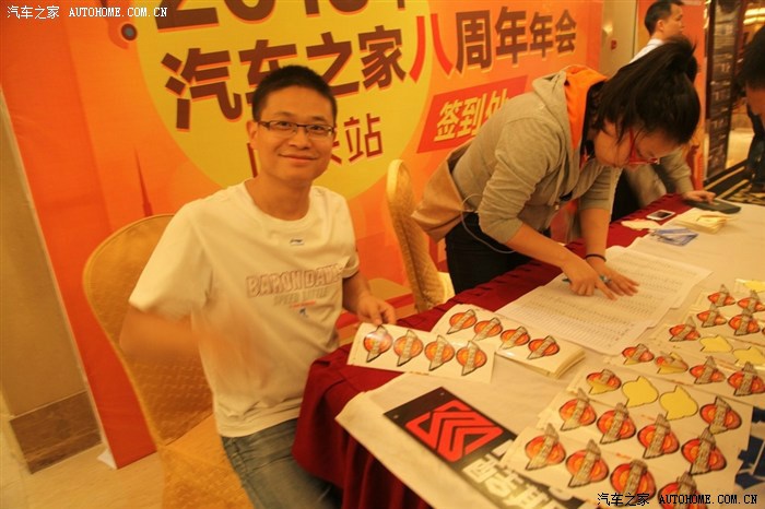 签到处,每人发一2个纸标,一个金属质感车标