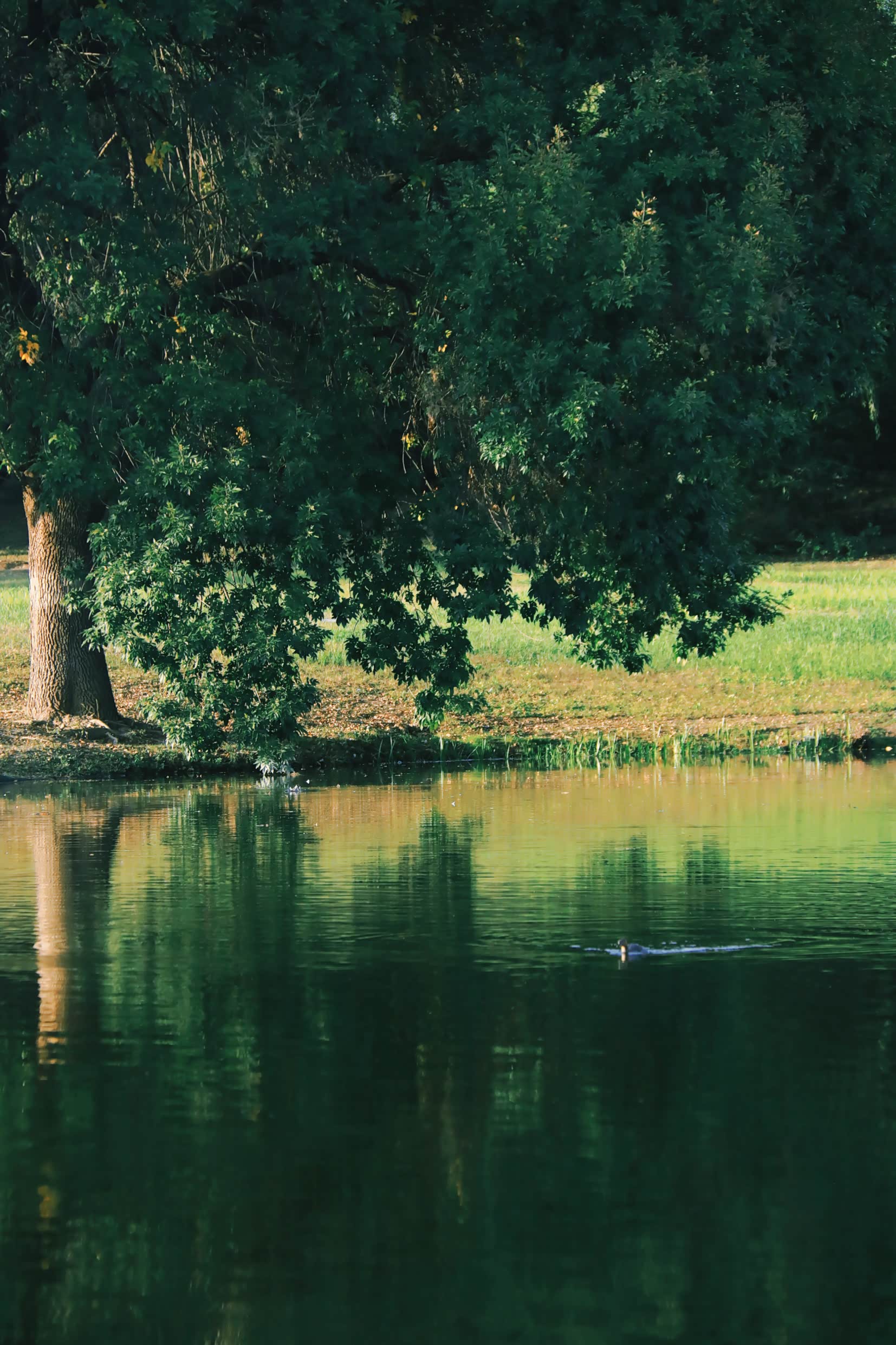 除了花田野趣的莫奈花园,奥森北园的神木园也值得去走一走。这里有个小池塘,一棵孤独的树,还有三吃贪嘴的大白鸭。