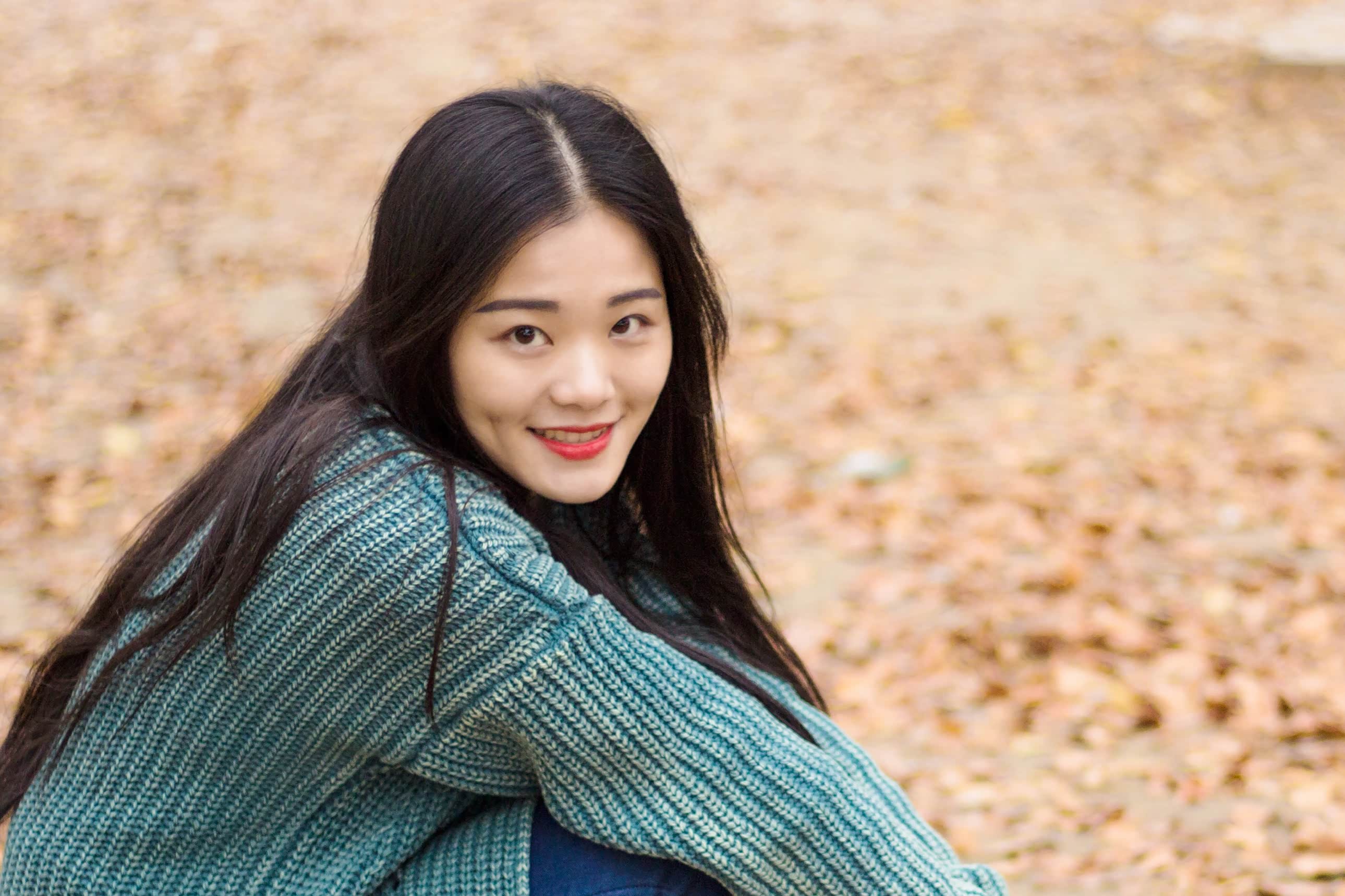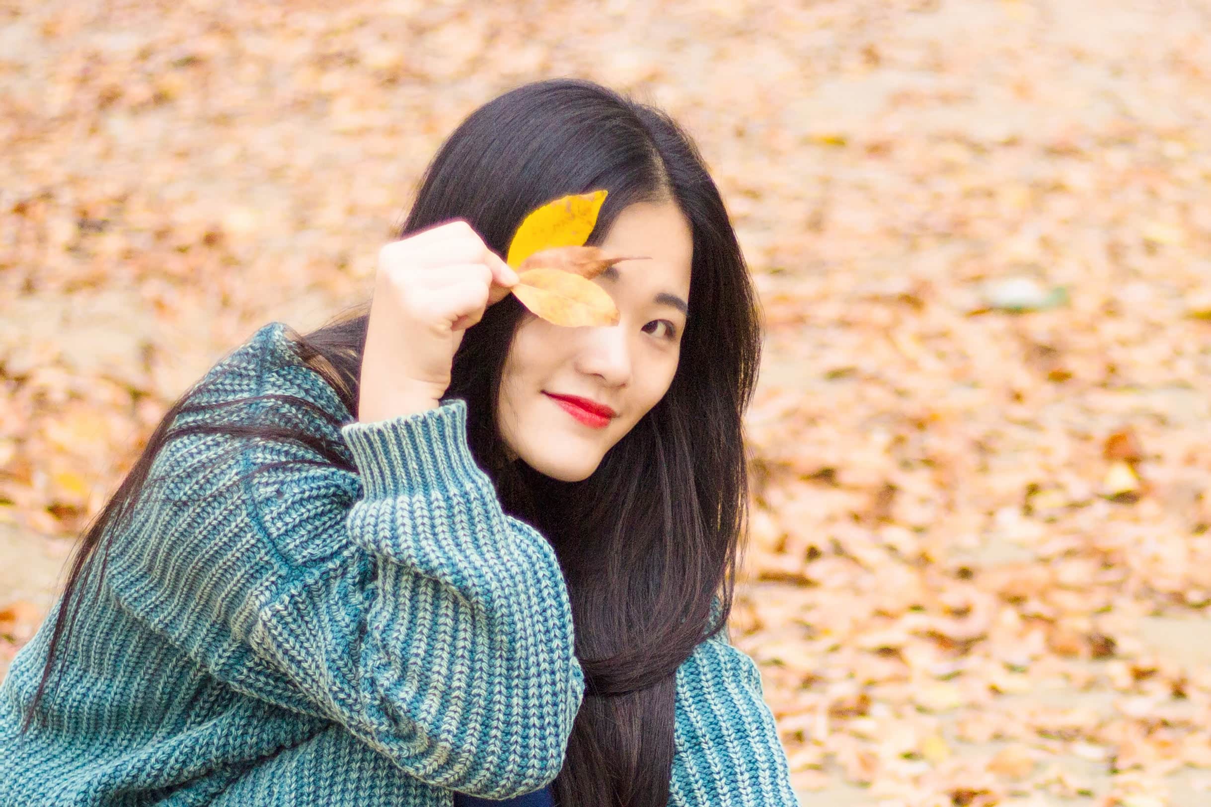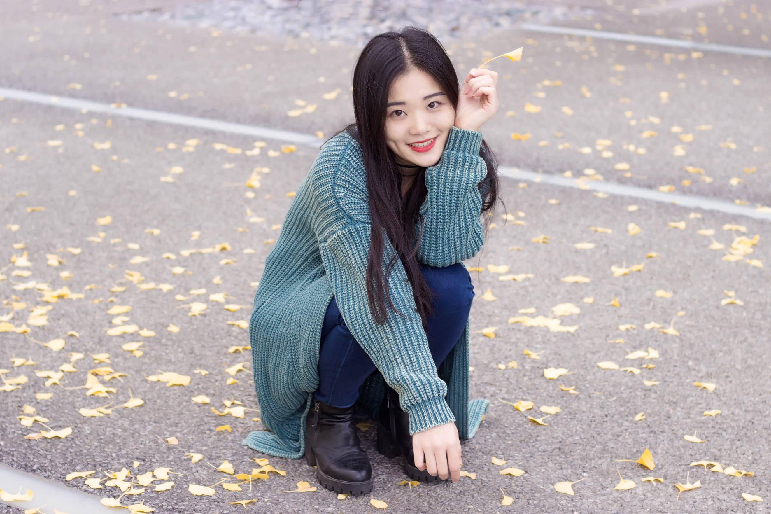 拍人像,个人认为越放松越出片。因此在拍摄过程中,我都是以玩的心态,让摄影师抓拍出更自然的表情。与此同时,可以捡一些落叶当道具,拍出秋日俏皮感。