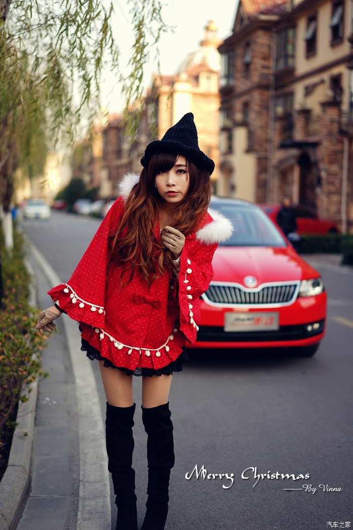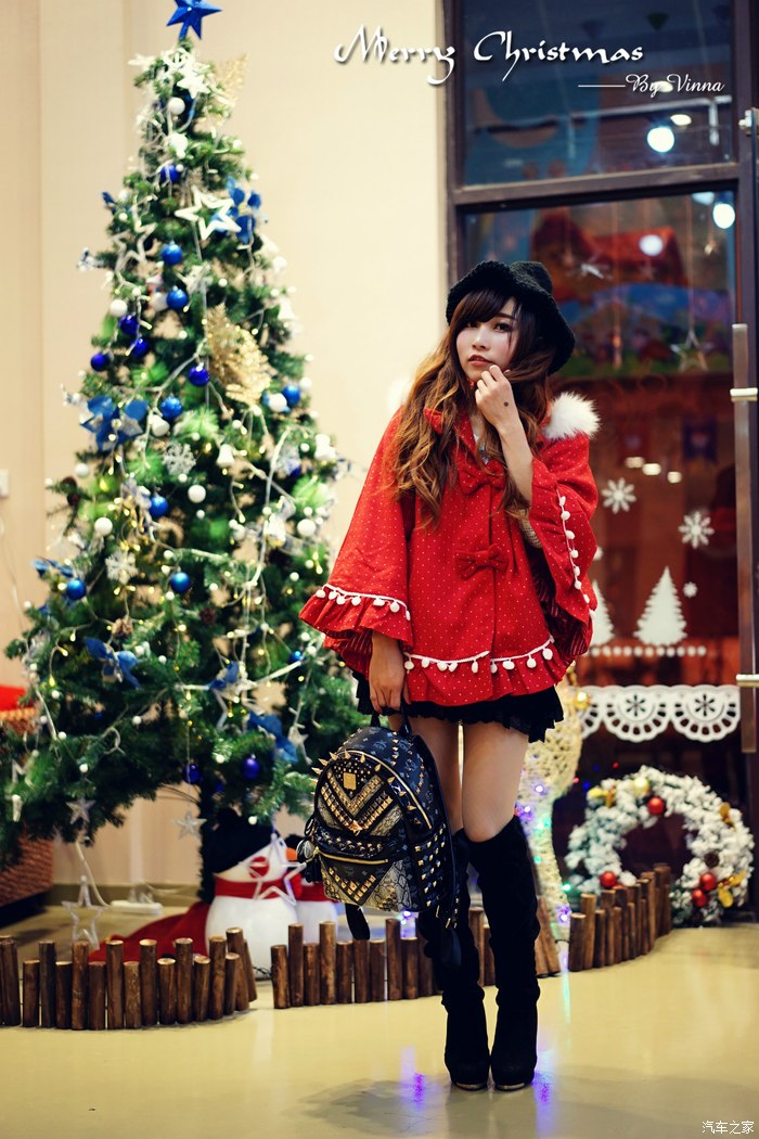 ▲2014 12月末,还真的是第一次以这样独特的方式开启圣诞节红妆盛宴“昕动”之旅,特地准备了件大红带有圣诞元素的斗篷来搭配本次体验座驾”昕动“。