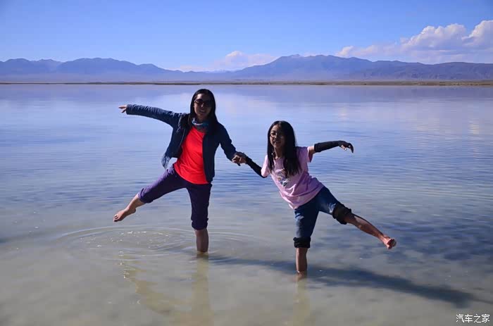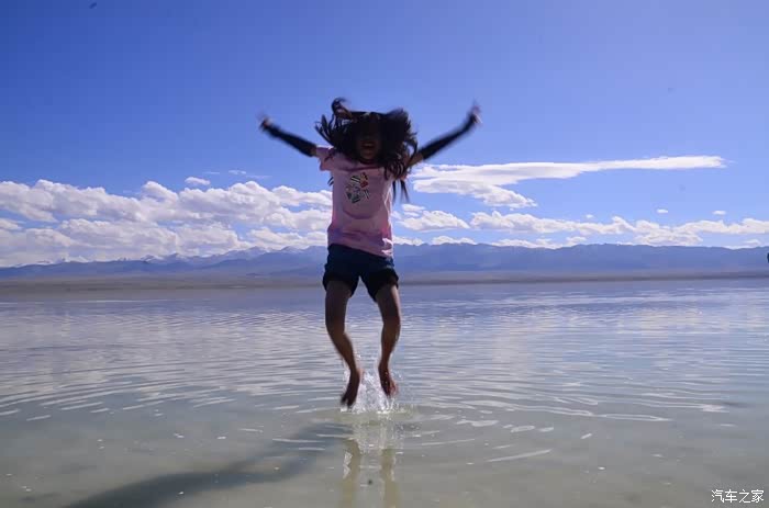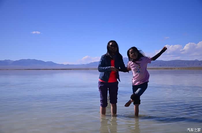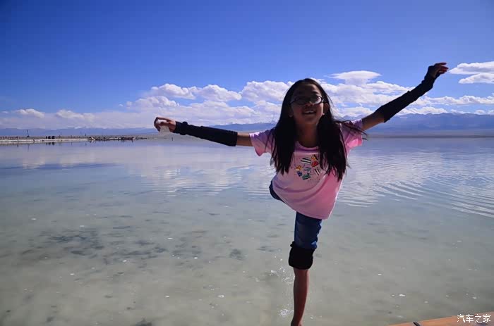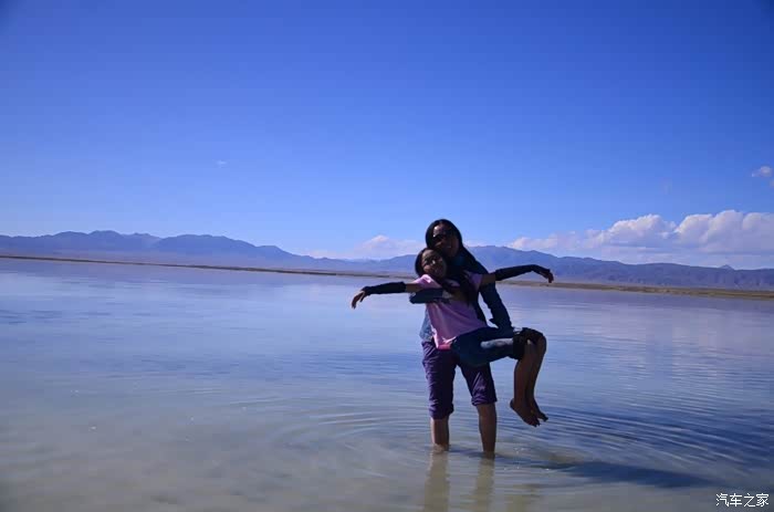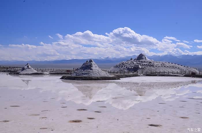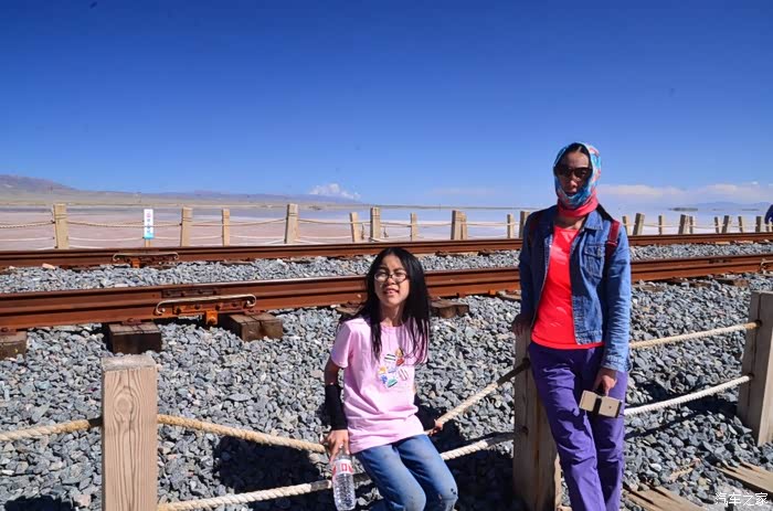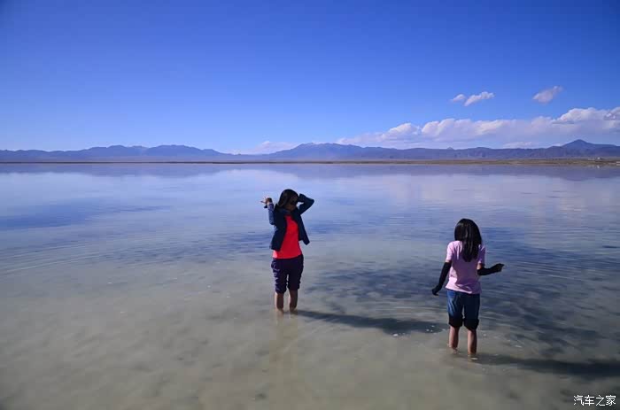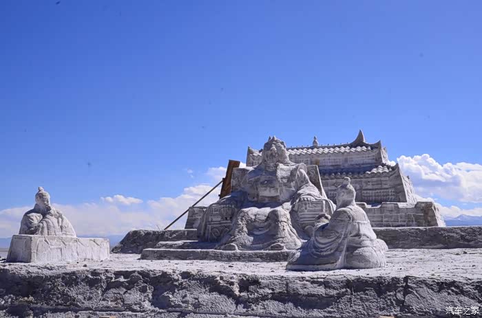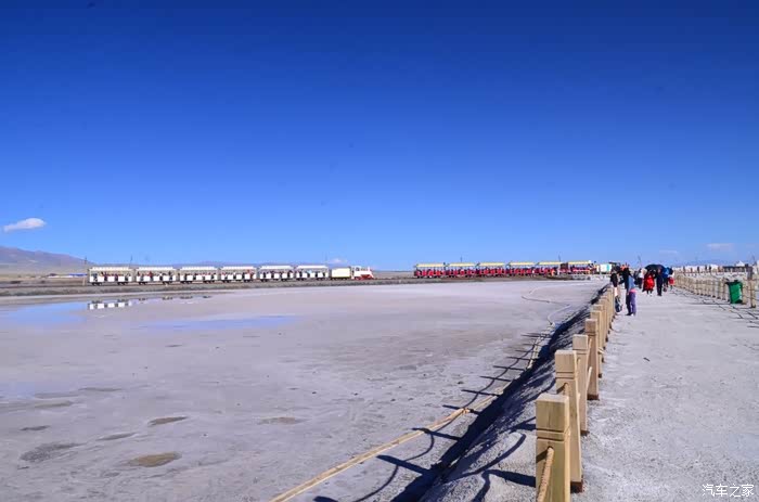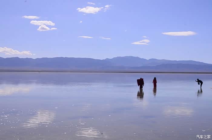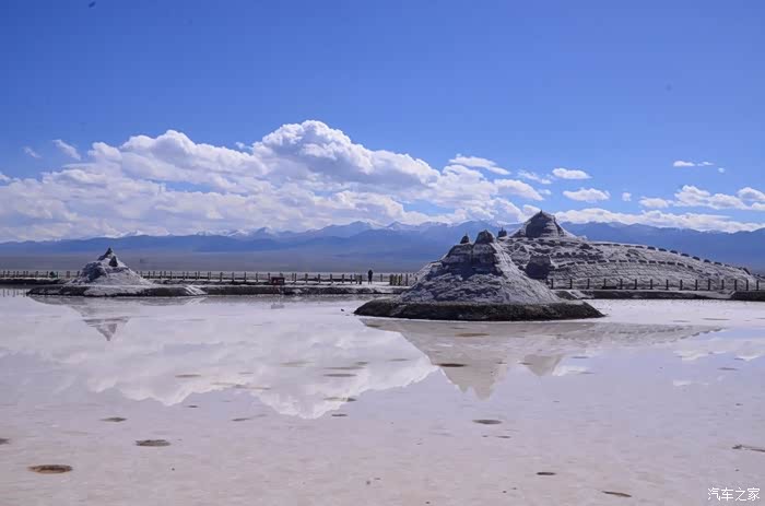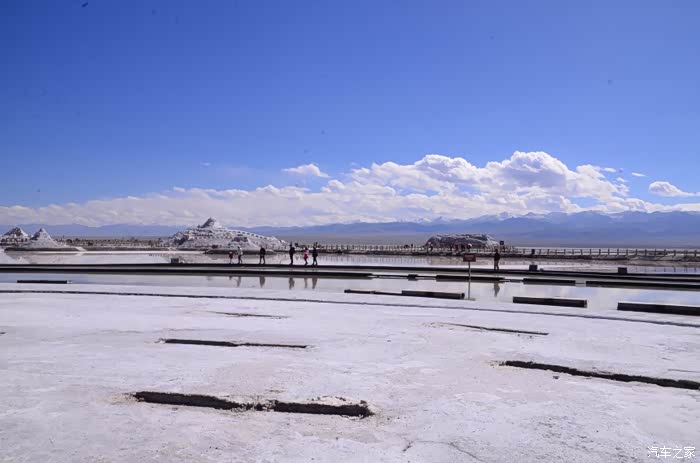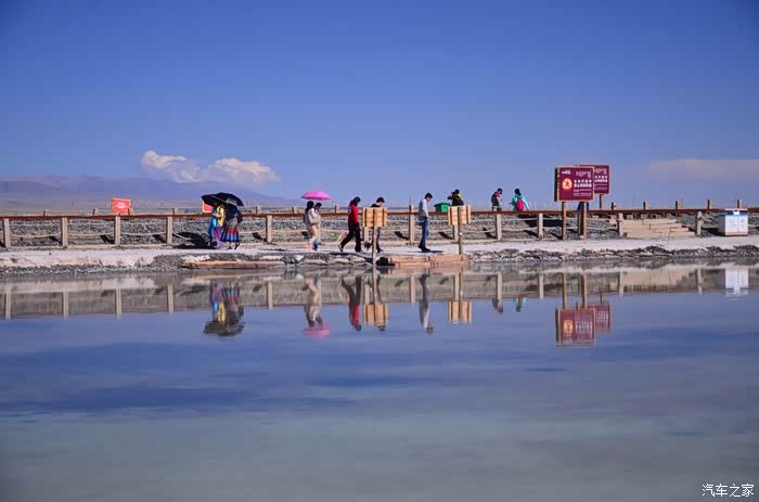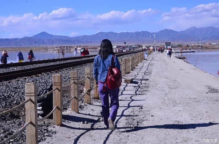 盐湖其实就是个盐湖,周边荒凉的很,以前估计啥都没有,现在是弄了个旅游风景区。在G109旁边有个小镇子了,应该叫茶卡吧,路边找了个餐馆吃了点东西,然后往盐湖去了。进去盐湖的路边很多卖一次性水鞋的吆喝,看前个月车友的游记说在路边卖鞋比较便宜,可以猛砍价,我也有样学样,可是进去后才知道现在为了环保不给穿胶鞋下湖了,下湖一律赤脚,我去,路边卖鞋的有点不厚道的感觉!买了票,走进去的茶卡盐湖,虽然有小火车可以选择,天空不是太给力,灰蒙蒙的,远景很不清晰,所以,所以就没什么了。进去是天空之境的石碑,拍照的人太多,基本都是被霸占了,周围几座盐雕,然后沿着小火车道往里面的湖走,水真的是很咸,赤脚下去后一上来腿上全是细盐,天空之境有点意思,很多人下去了不想上来,特别是文艺青年,我懂的!领导们说去了西藏回来后啥都没劲了,好吧,我得尊重他们的意见!所以要去西藏的同学得慎重考虑下!