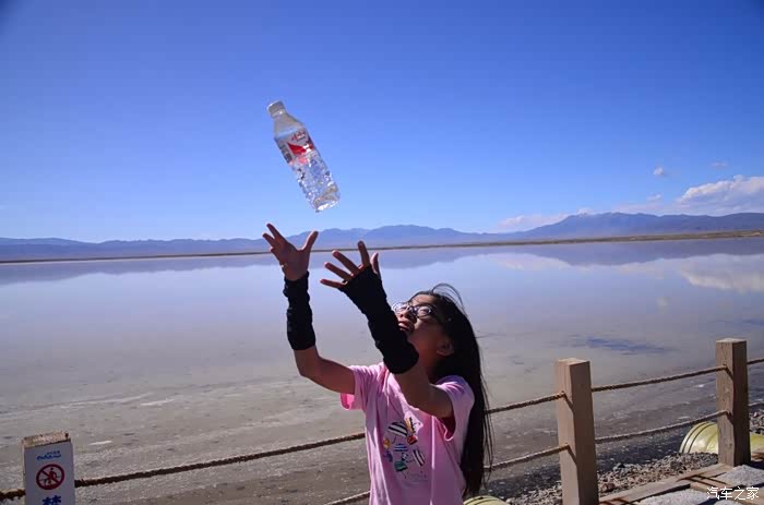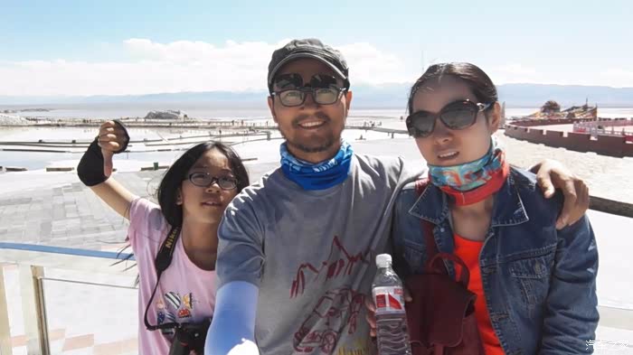 之前的想法是往敦煌那边去的,看看月牙泉和张掖的丹霞,这两天的大雪和堵车耽误了一天时间,只好改为走盐湖到青海湖了,然后西安、湖北、湖南回粤。起来后酒店吃了早餐,旁边的加油站补充完毕(酒店吃早餐和加油都同时遇到南宁一个房地产公司的自驾车队,应该是10来部车,都是从西藏回来了,老板真好,给个赞),跟导航沿高速(G6)去了茶卡盐湖。一上高速,路是双向4车道,笔直笔直的,但是几乎没车,开始慢慢悠悠的,好好欣赏一下两边的景色,右边是连绵的山脉,但是没雪少了点灵气,一连串黑褐色的山体(还没雪)让人感觉有点压抑,路两边的沙漠偶尔有点植被,但是密密麻麻地长满了风力发电机,硕大的机翼有停着的,也有转动的,还有骆驼也会时不时的出现在沙漠上。两周整体比较荒凉,但是一直有G109并排着走,随处可见大货车,倒也不觉得孤单!后来地产公司的车队上来了,为头的一辆宝马X6,应该是老总的了(亲自带队),后面跟着大队伍,但是都不敢贸然跟得太紧(你懂的,老板都是要走前面的,不能被超越的,这是规矩)。后面梯队中的一辆现代的名图,有点搞事情的意思,挑衅了几次,小三一怒之下朝前面的X6奔去,懒得跟你啰嗦,妈的终于见后面的名图老实了。后面直接一百五六十,杀到了G6后段的山路,一路按照限速来到了茶卡盐湖。途径哈德令的路口,领导给女儿普及了一下海子的故事,生命真脆弱,死亡更可悲,若为诗而去,两者算什么,其实还是喜欢面朝大海、春暖花开的海子!