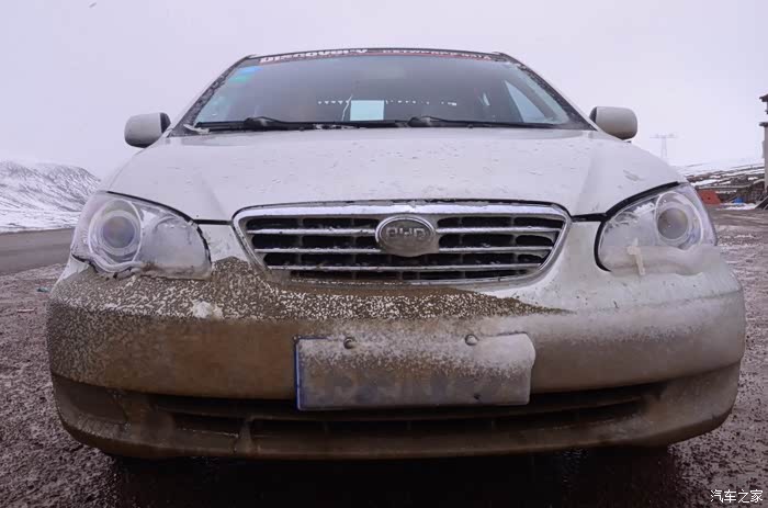 昨天出入那曲的泥坑留下的痕迹 到大灯处了