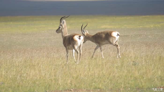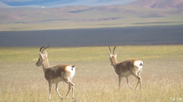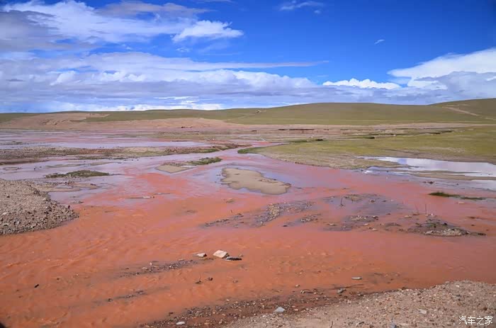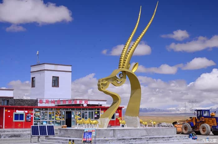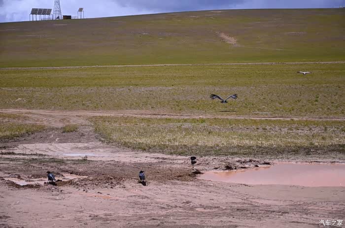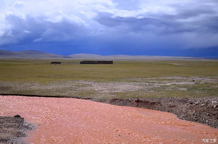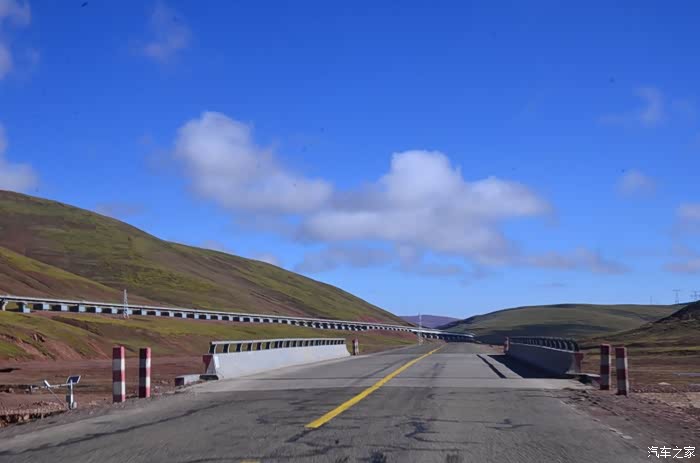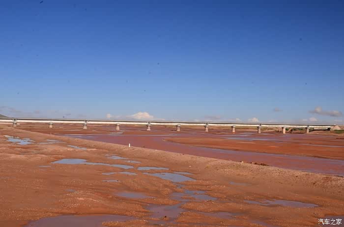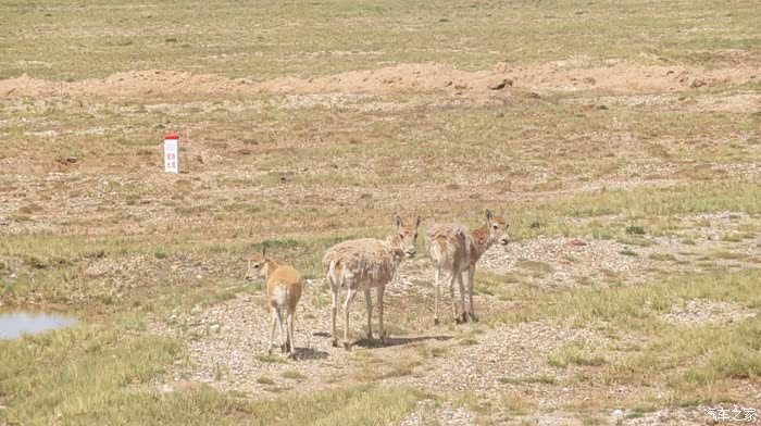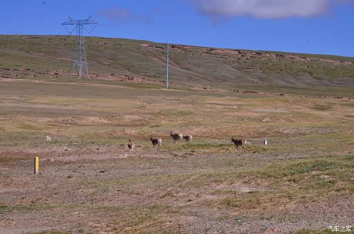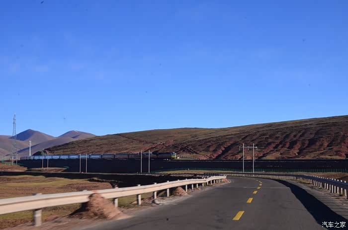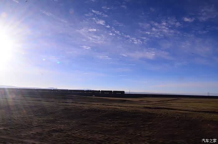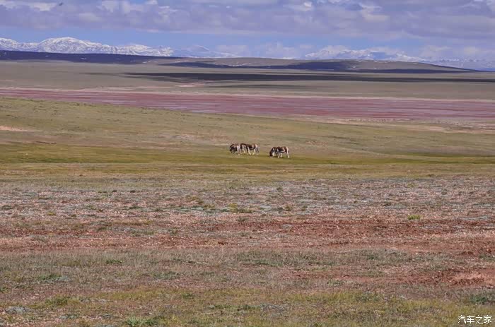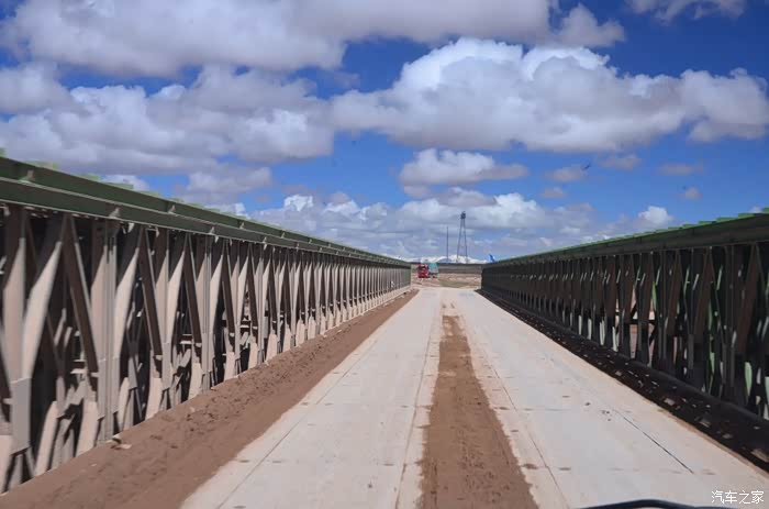 回到我们自己的行程上来吧,今天的主题是塞车,体会了一次刻骨铭心的G109塞车!我们吃完早餐,告别老板,当然也谢谢他的善意提醒,沿格尔木方向出发,过了小镇的桥(沱沱河),说这边是三江的源头,有个水文观测站,没什么兴趣下去了,过了桥就是可可西里的藏羚羊保护区了,苍茫的草地上远处是群山连绵、白雪覆顶,头上是蓝天却少了白云(这边有点奇怪,只有天边群山的是否有一圈云朵,天空明显没西藏那边干净),成群的藏羚羊时不时出现在眼前,见车来了又很快又奔跑开了。G109还有一条与之平行的青藏铁路,就是这对难兄难弟为青海和西藏的经济建设、国家和平和物资运输作出了极大的贡献,偶尔你还能见到火车在两边奔腾,车上有绿色的车厢,也有坦克大炮什么的。可可西里在沿途有好几个观景台和保护站,过了可可西里救护站和观景台,一座大桥被大水冲毁了,从左边临时搭建了工兵桥,桥的四周全是红色的泥沙,河里全是红色的泥沙水,铁桥的桥面是很平整,但是两端的连接路是非常的糟糕,大坑连连,慢慢地走了很久才重新回到G109上来。然后,然后就是悲催的一天开始了,无尽的卡车排成了一条长龙出现在了我们的面前,一看就是塞车了,没办法,两边都这样。估计很多昨天的塞车都还没疏通,昨天大雪有些大货车坏了后就塞了很多车子,一直到过了昆仑山才通畅。塞车持续了七八个钟头,后面的来车有些等不及了,越野车开始下了G109走草地上的野路,我们有自知之明就不去凑热闹了,后面见到的事情也证明了我们的想法是对的,一辆白色科鲁兹跟越野车走了一段野路后被一条河流给难住了,试了很多次都不敢过最后还是乖乖掉头回去,另外一辆极光和陆巡,从后面的野路上来的,到了我们塞车的位置野路的前面是一个大水塘,其实我觉得4驱车可以过去的没问题,可是他们又怕死了,想从路基硬冲上G109来,最怕的就是霸王硬上弓啊,极光在前面冲了好几次都没能成功,看着车子底盘被刮得那个厉害,心疼啊,后面是陆巡先上来了,极光硬生生后退加速靠惯性冲了上来。好吧,想想我们自己从措勤到来多乡的时候也何尝不是这样,不顾一切的冲,可以理解,可是我们也不得极光哥任性啊,我们那时身不由己,绝不是任性!