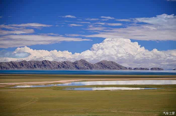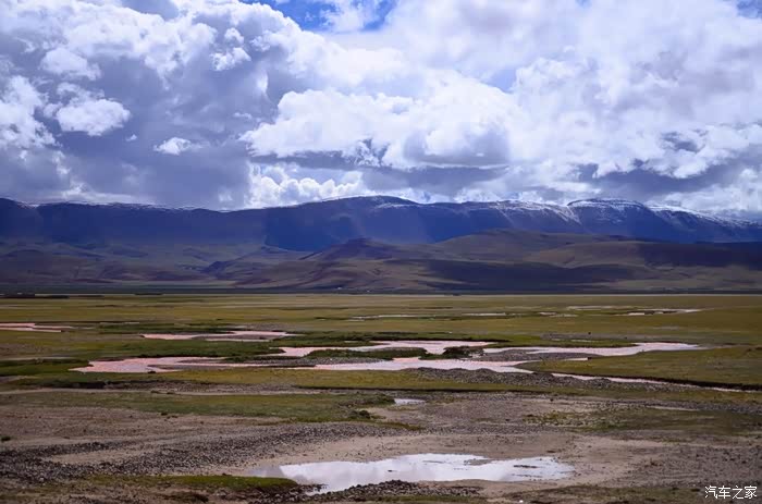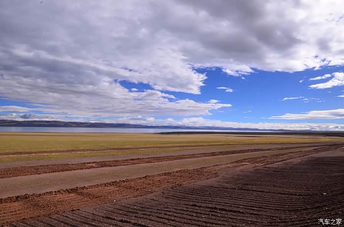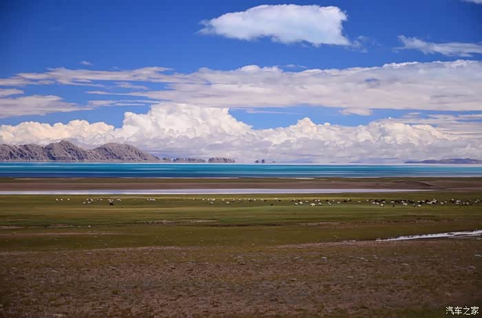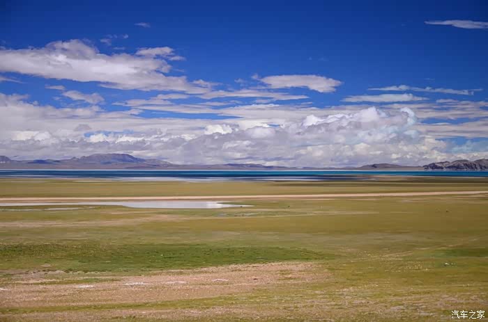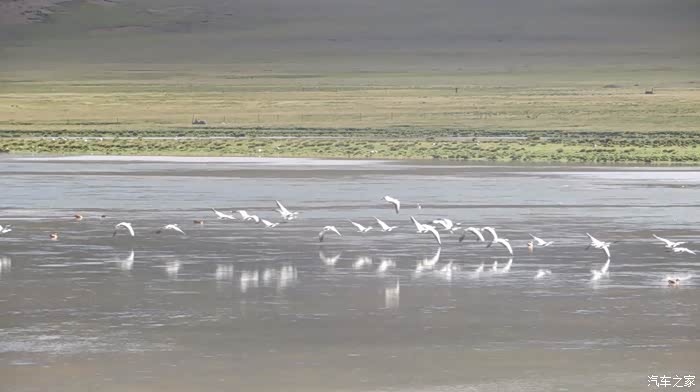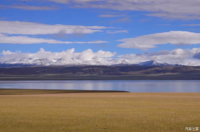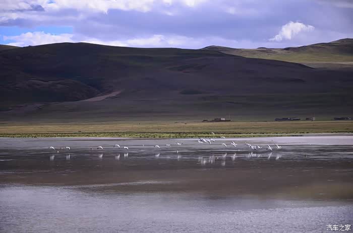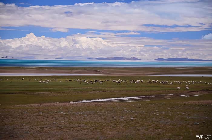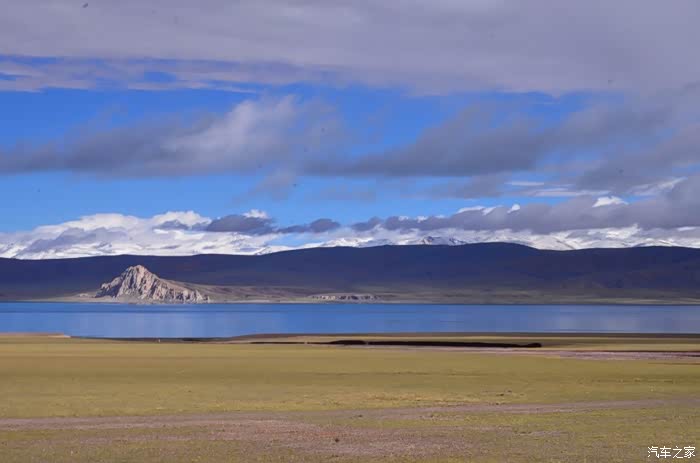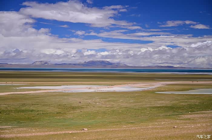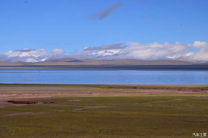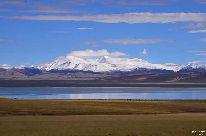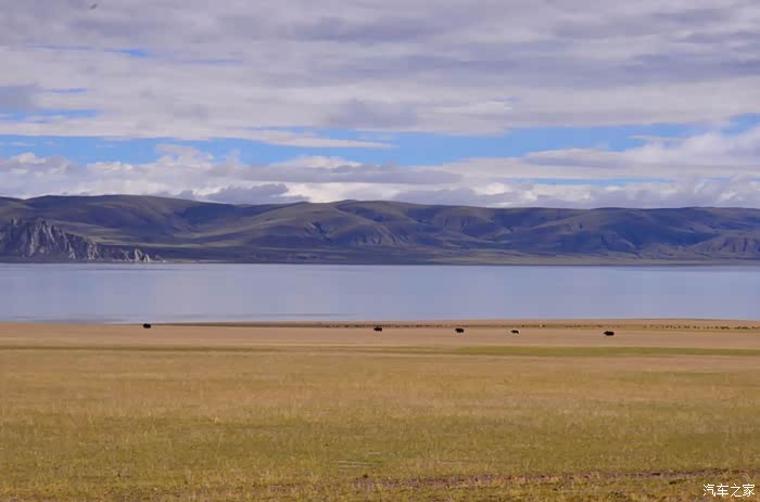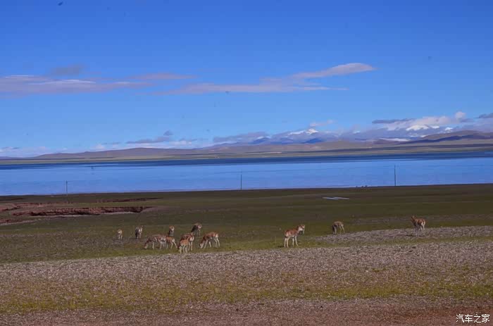 今天的路况好了很多,S301的路面是崭新的沥青路面,刚铺好的,没的说。领导们说我们是终于逃出了无人区,不再有措勤到尼玛途中的惊险和刺激,不再有迷惘和绝望,不再有不断的未知和惊喜、失望和希望的交织。。。公路两边还是一样,一帧帧美丽的画卷,可以安心欣赏美景了!出县城没多久就是左边的达则错,错子不小,远侧依偎着大雪山,天空的云层有点厚,导致湖面不是太通透,眼前是一片平整草地铺到湖边,草地上牛羊成群,野鹿奔跑,悠然自得!